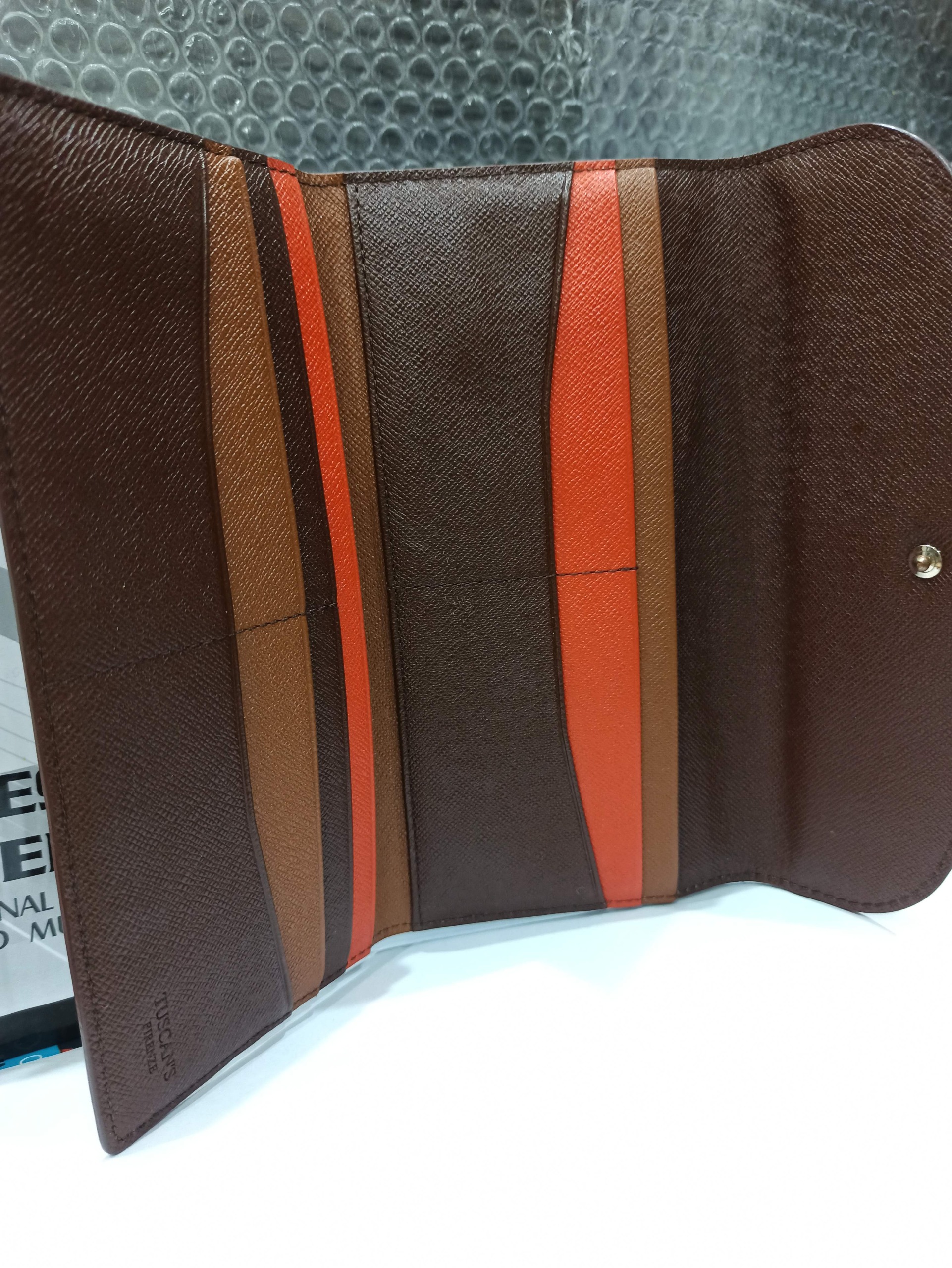 کیف پول چرمی اصل از برند معتبر توسکانز (TUSCANS)، با طراحی شیک و کیفیت بسیار بالا. مناسب استفاده روزمره یا رسمی. کیف به همراه جعبه برند ارائه میشود و گزینهای عالی برای هدیه دادن نیز میباشد. جنس چرم طبیعی، رنگ قهوهای همراه با بخش های نارنجی رنگ داخلی ظاهر کلاسیک و بسیار بادوام.