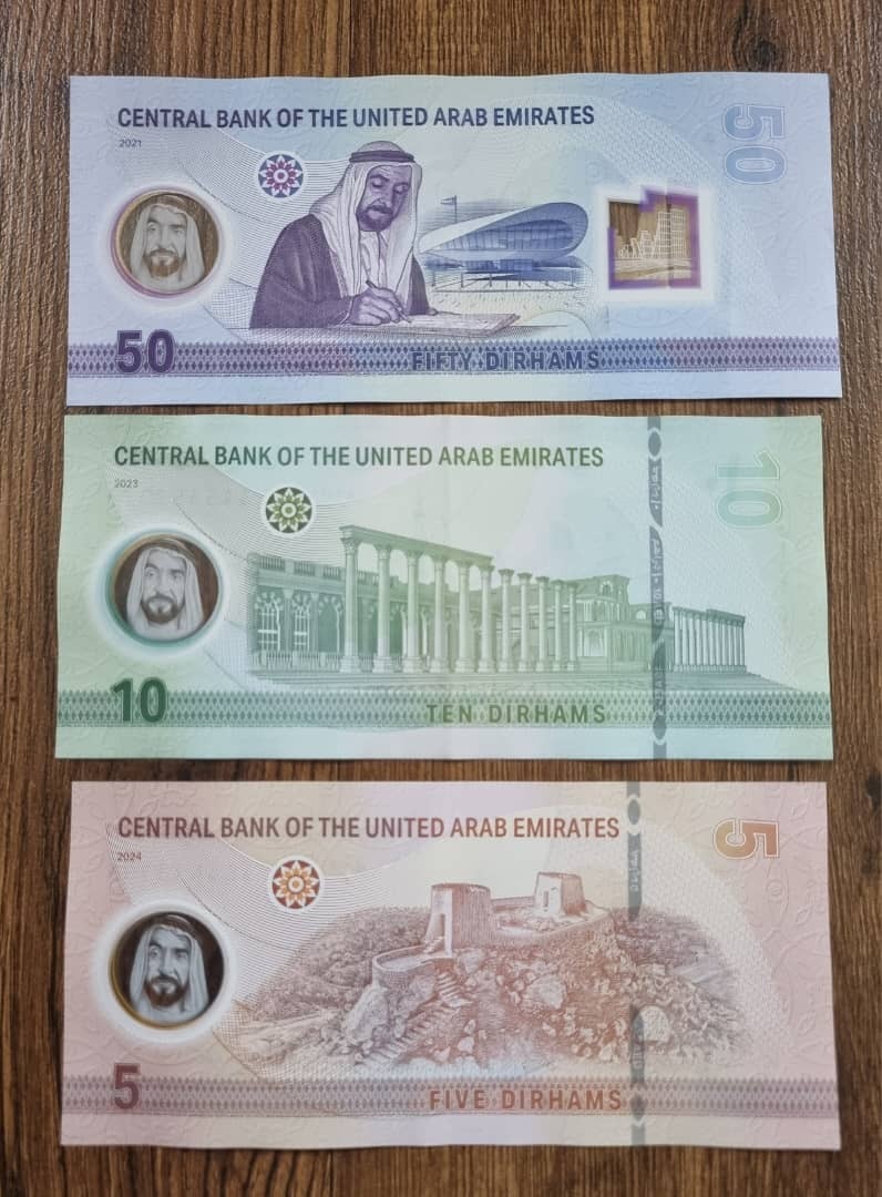 اسکناس تک 5و 10 و 50 درهم پلیمری امارات