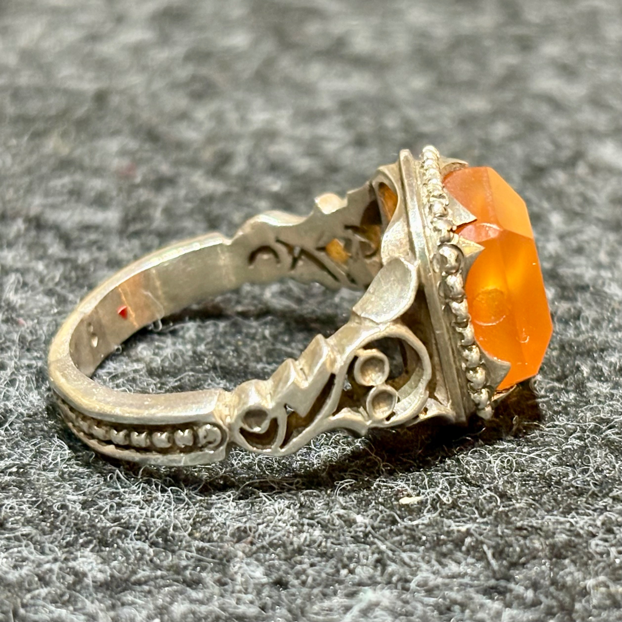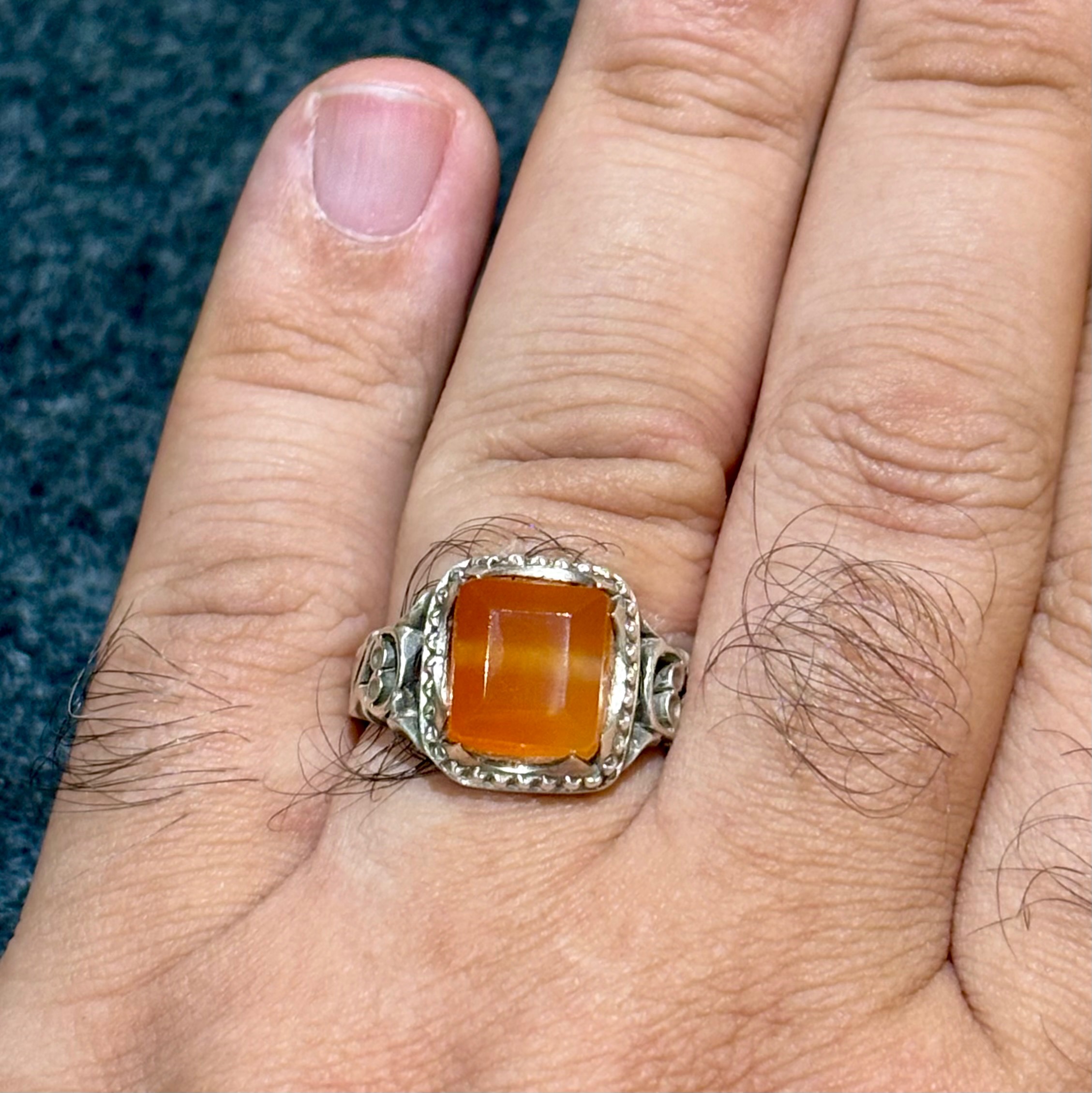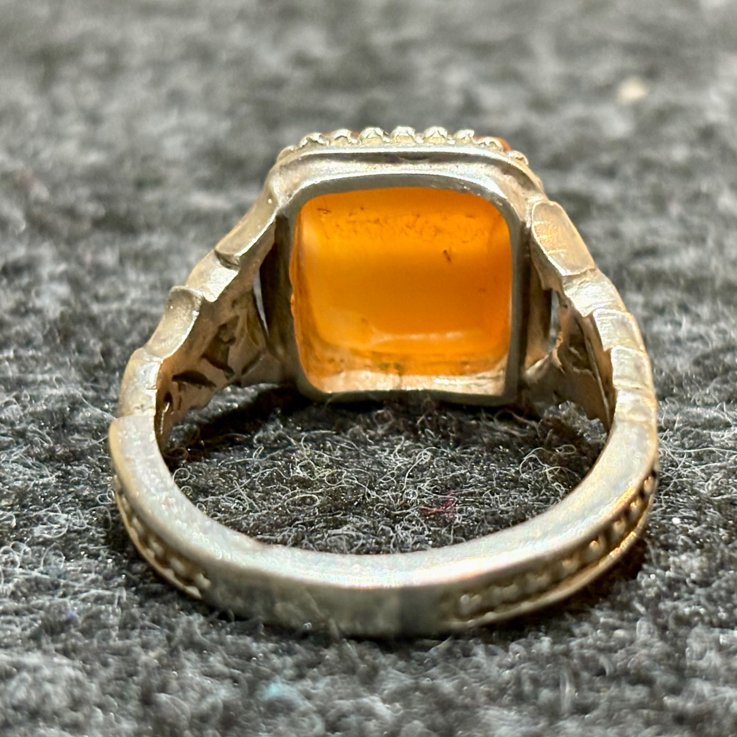 انگشتر نقره با نگین عقیق یمن مهره کهنه عسلی