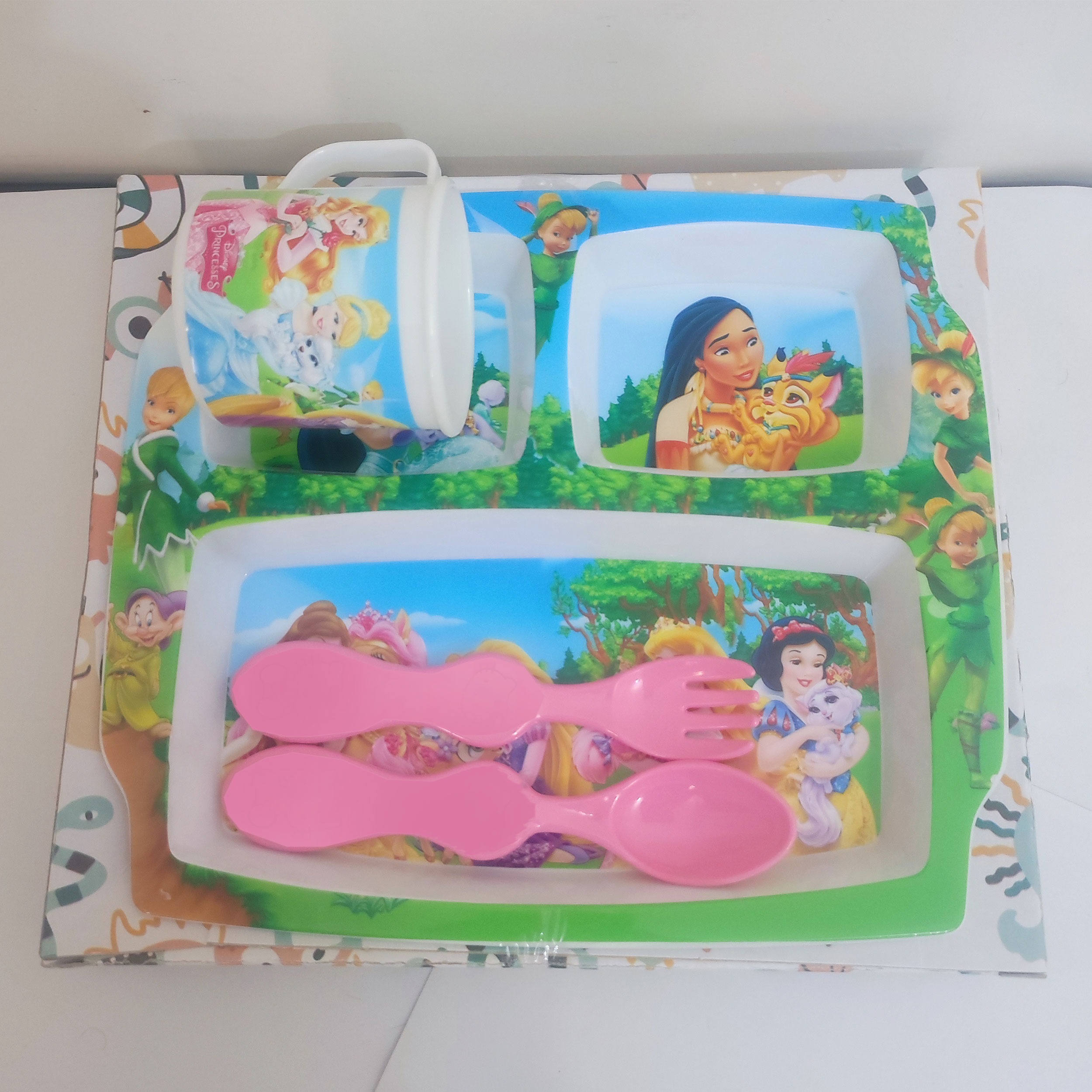 بشقاب کودک کودک طرح پوکوهانتس شامل یک عدد بشقاب، لیوان و قاشق و چنگال است. تجهیزات از جنس پلاستیک ساخته شده اند. طرح کارتونی روی ظروف باعث جذابیت آن برای کودکان می شود. ابعاد بشقاب 24 در 20 سانتی متر است.