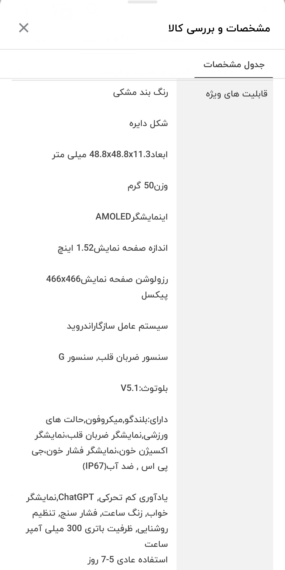 برای دریافت مشخصات کامل مدل ساعت را در گوگل سرچ بفرمایید