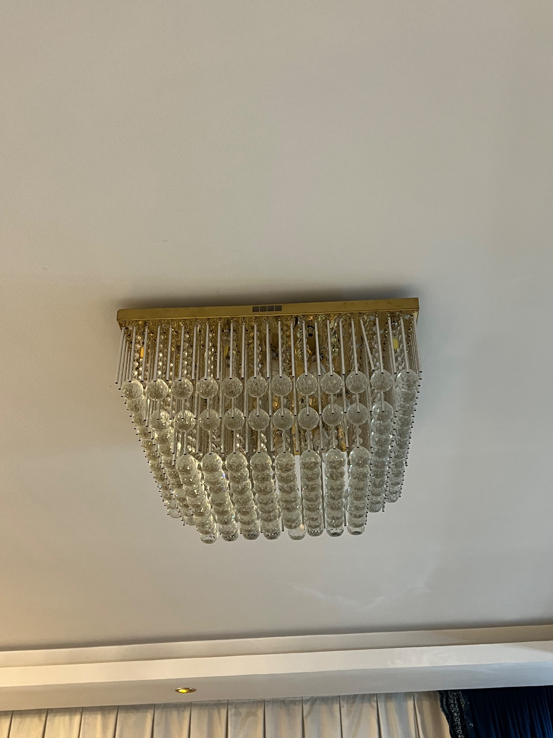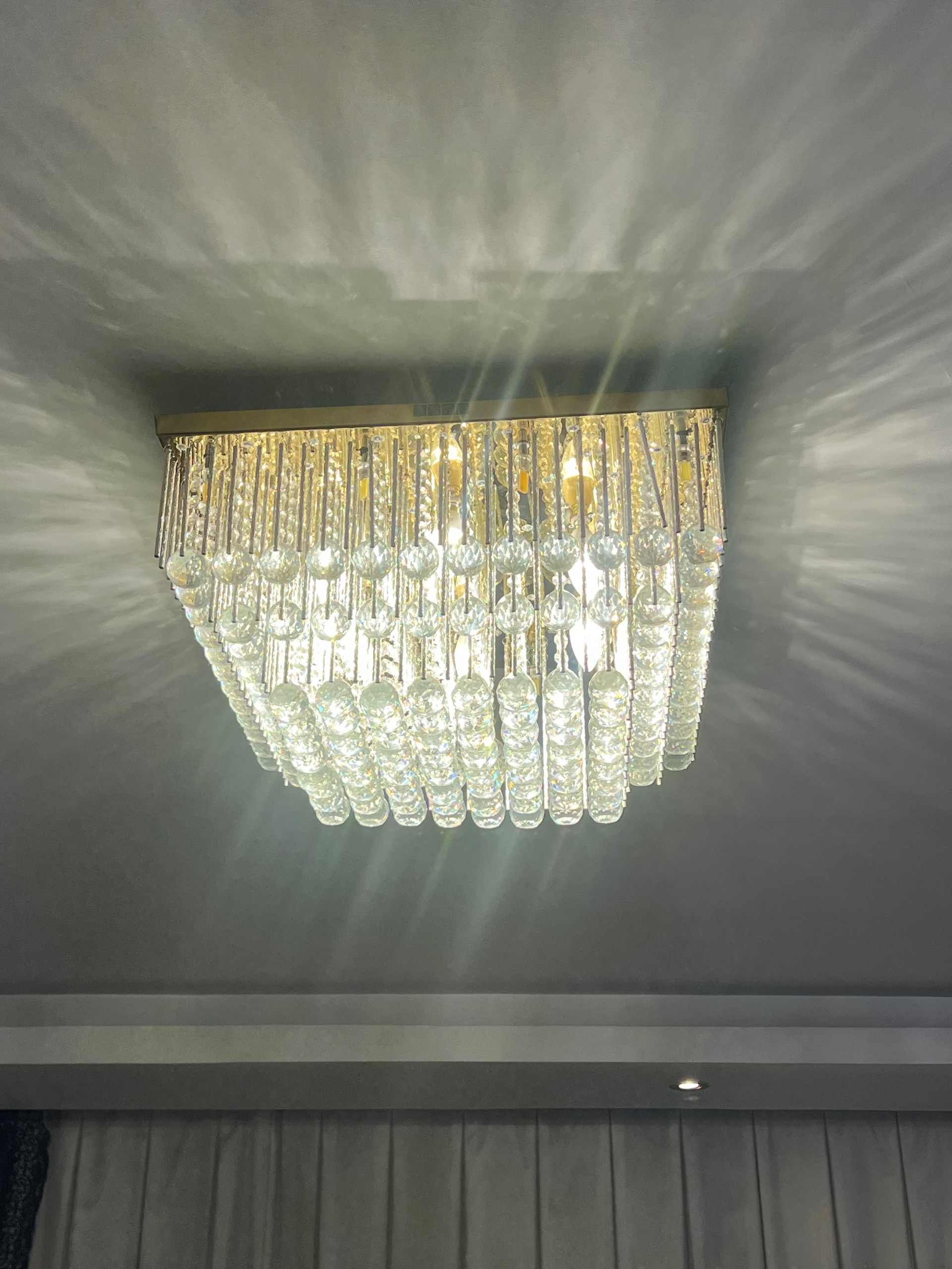 دو لوستر مشابه با ابعاد 40 در 40 هرکدام 144 کریستال کروی دارد. ریموت دار. سالم و در حد نو