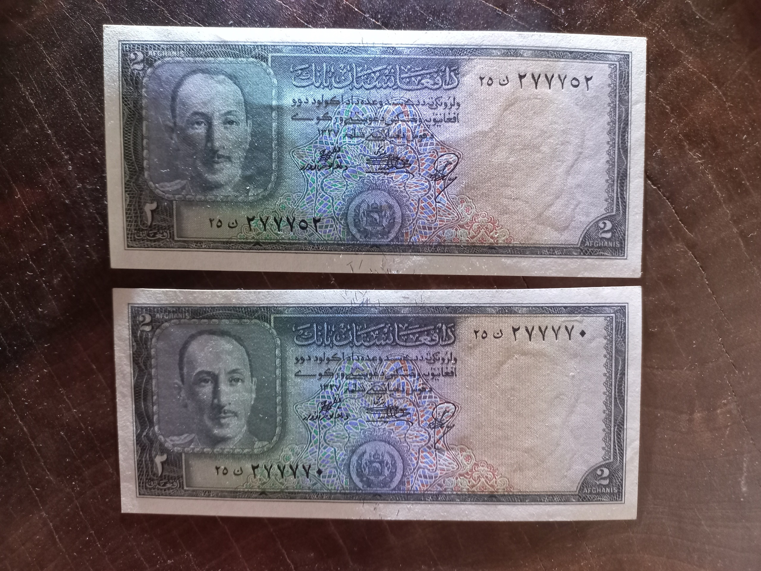 ********* اسکناس بسیار کمیاب 2 و 5 و 10 افغانی محمدظاهر شاه افغانستان. کیفیت از دید بنده بانکی است و در حالت سختگیرانه، در قسمت سمت چپ اسکناس های 5 و 10 اففانی، شکستگی بسیار جزیی قابل مشاهده است. تا شدگی به هیچ عنوان ندارد. با این حال لطفا تصاویر ارائه شده در حالت عادی و همچنین زیر نور را و صد البته تجربیات و نظر خود را ملاک خرید قرار دهید. . دو برگه اسکناس 2 افغانی از یک بسته بوده و شماره آنها دارای اختلاف جزیی است. شماره زیبا و قشنگ دارد. . لطفا بر طبق تصاویر ارائه شده و تجربیات خود خرید نمایید. با احترام فراوان و بدور از هرگونه جسارت نسبت به خریدار محترم، با توجه به نهایت صداقت اینجانب و توضیحات فراوان و ارائه تصاویر کافی، امکان عودت کالا پس از خرید وجود ندارد. *********