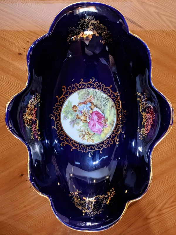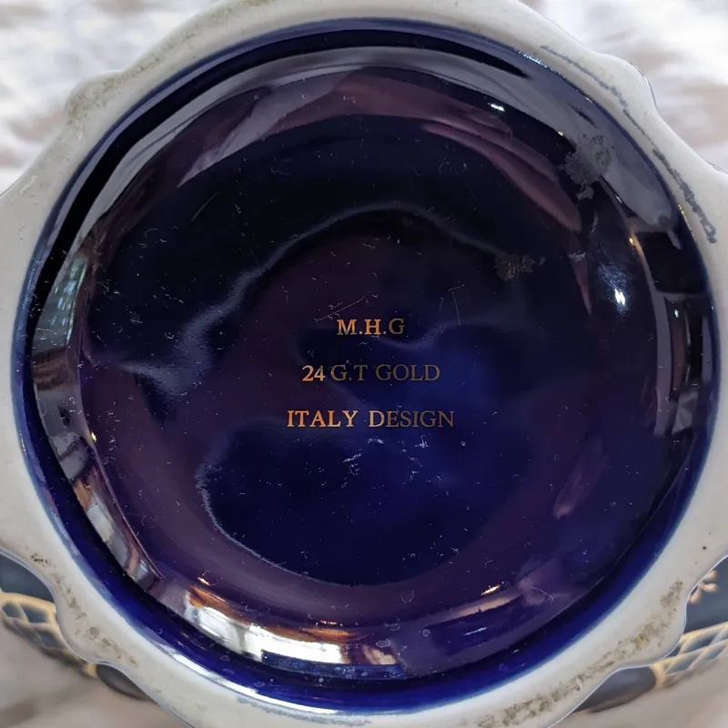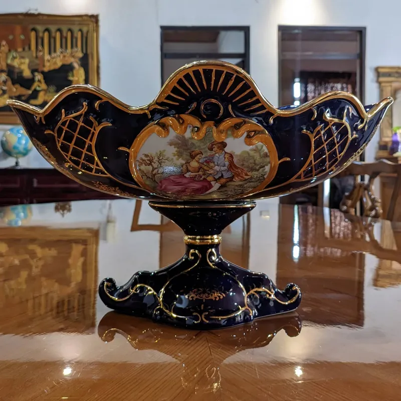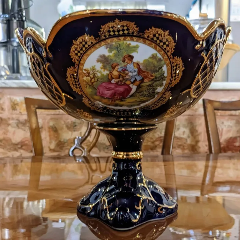 کشکول میوه خوری پایه دار سرمه ای طلایی