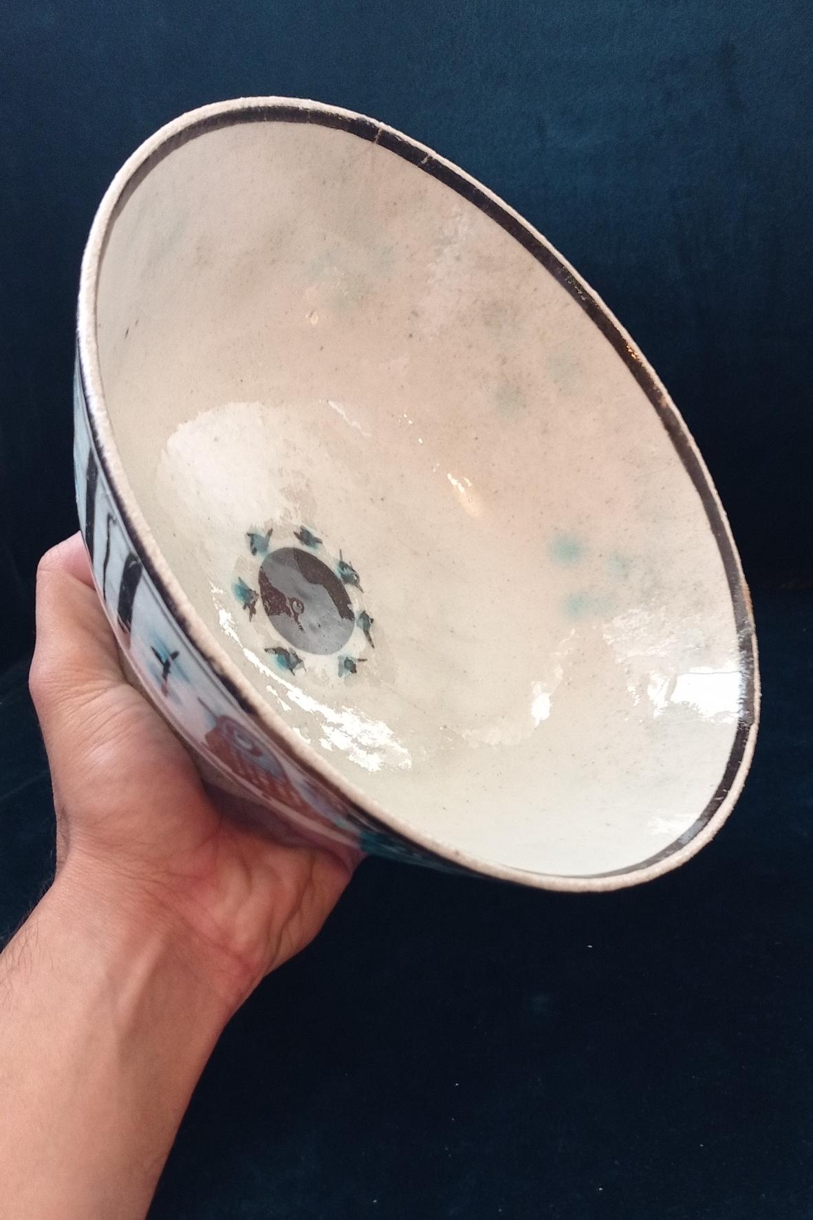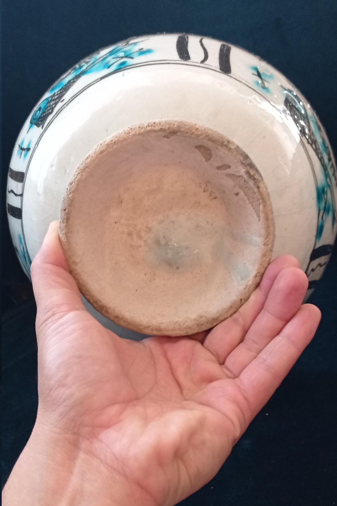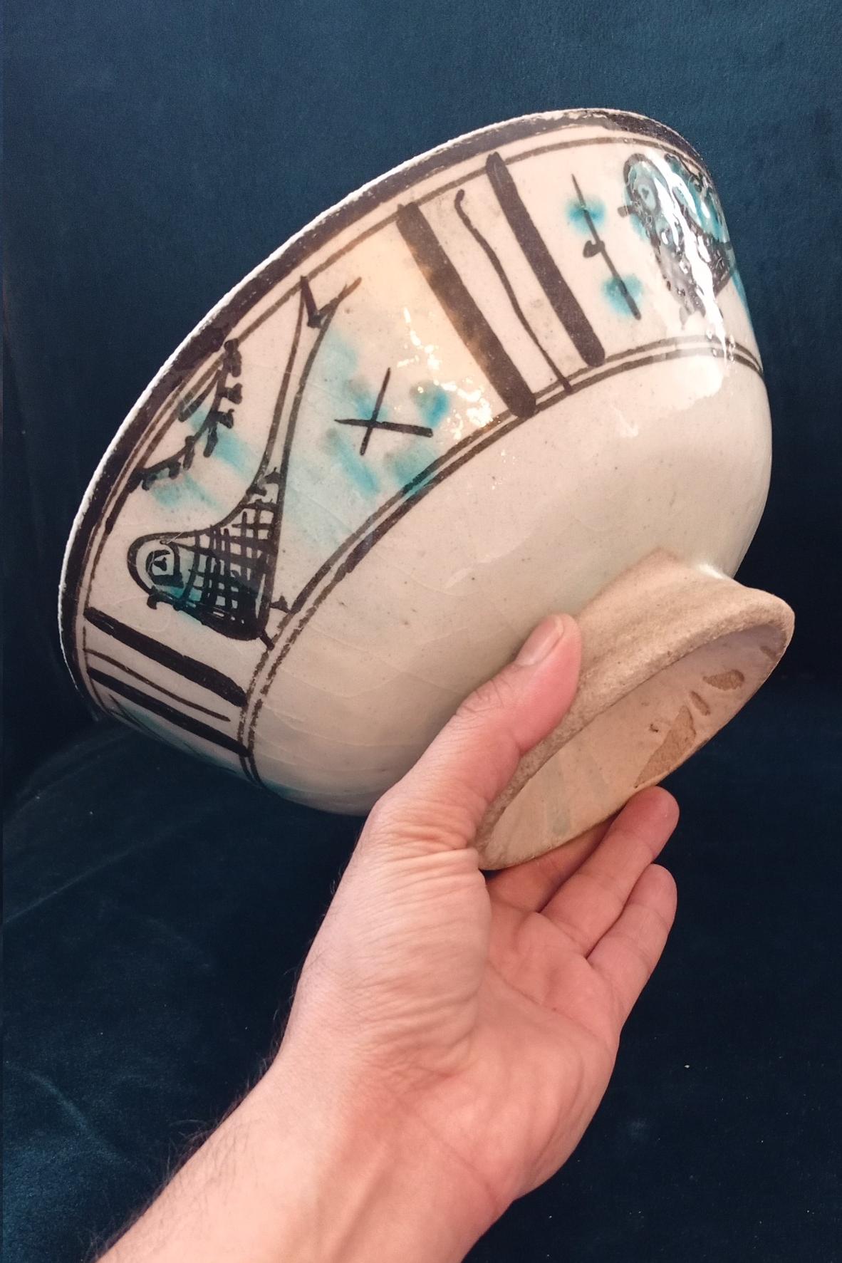 دوستان عزیز خودتون ملاحظه کنید که چقدر این کاسه کعبدار زیباست.این مدل کعبدار بسیار کمیاب هستش.واقعا بعد از این همه سال قدمت ببینید چقدر سالم و سلامت مونده.فقط طبق عکس آخر یه ترک مویی لبه کار سمته چپ داره که نسبت به این سن و سال طبیعیه.بیایین بخرید..