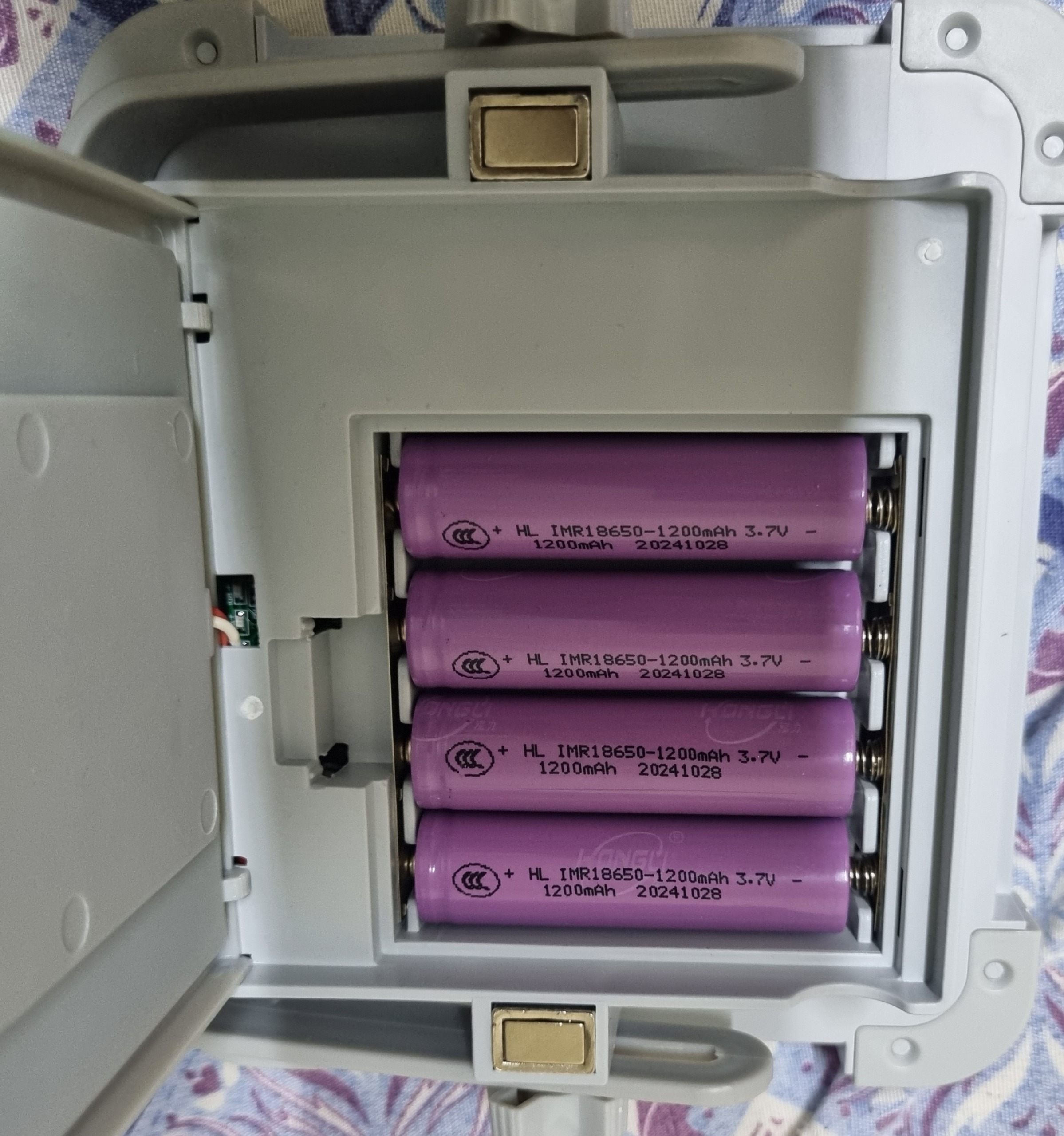 دارای 4 عدد باتری 1200 میلی آمپری و شارژ شدن وسط پاوربانک و اداپتور