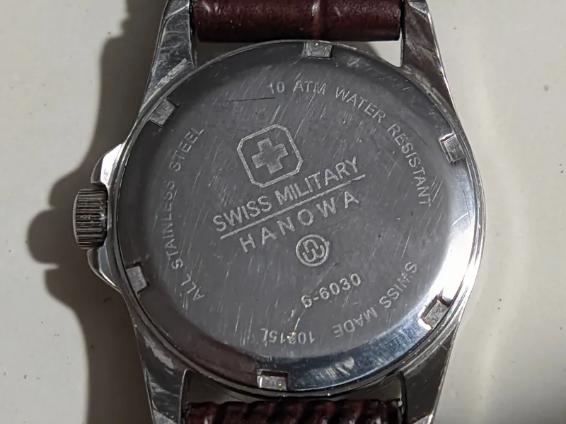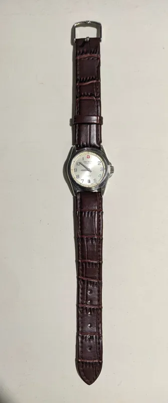 ساعت مچی زنانه اصل سوئیسی مارک HANOWA . دارای تاریخ روزشمار. دست دوم کارکرده. بند چرمی غیر اصل معمولی ولی سگک بند اصلی