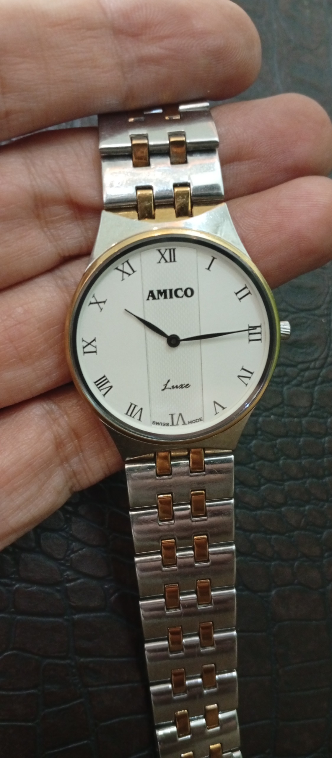 ساعت آمیکو چون برند آمیکو نبود انتخاب برند نداشت بسیار زیبا و خاص کار اصلی هستش مشخصات پشت ساعت رو گذاشتم مطالعه کنید