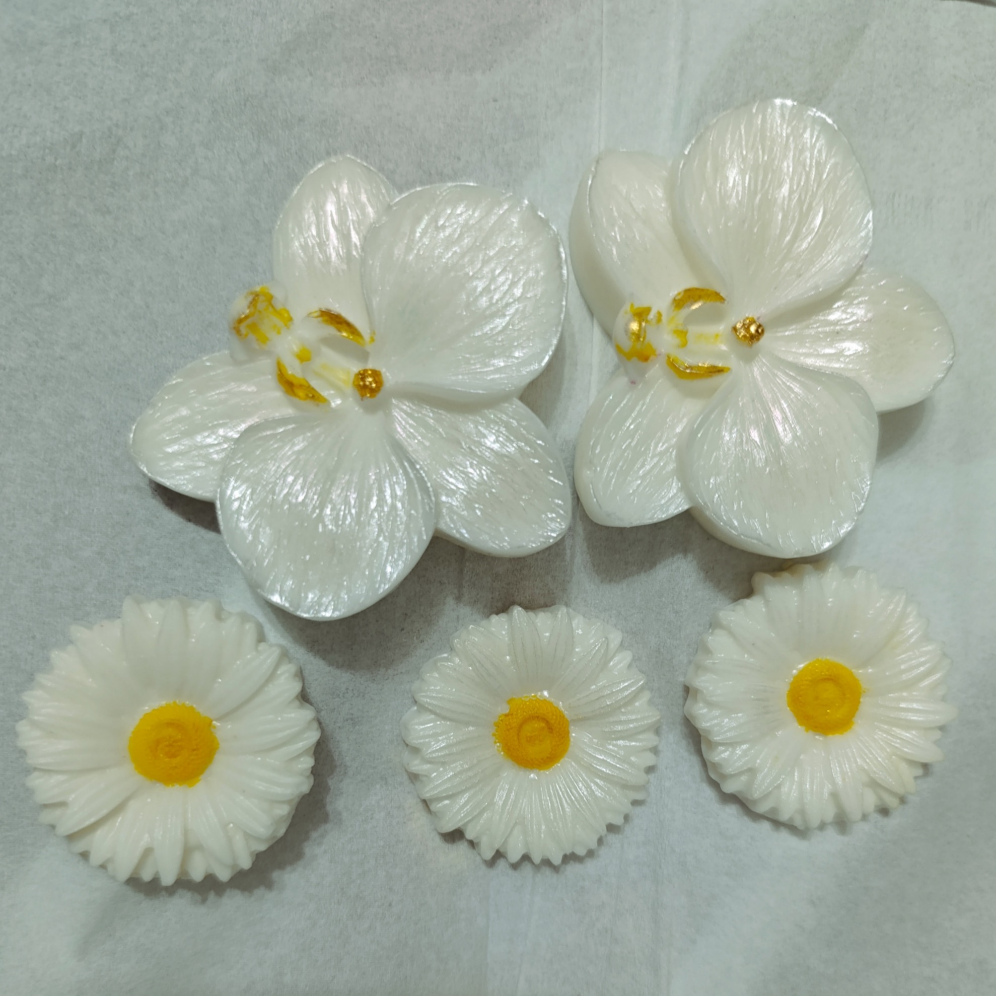 شامل دو عدد گل ارکیده و سه عدد گل بابونه