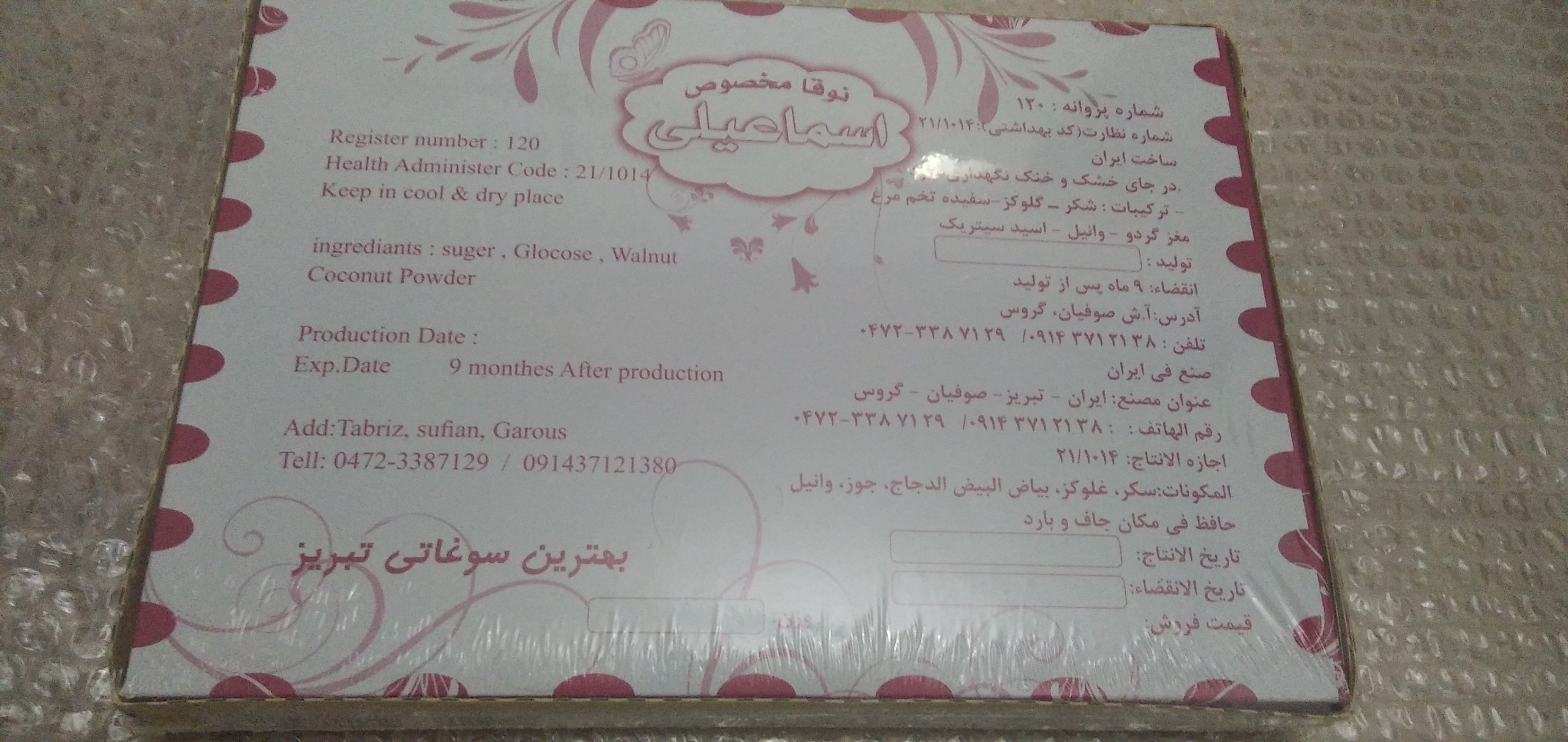 گز نوقا مخصوص اسماعیلی با ارسال رایگان به سراسر کشور