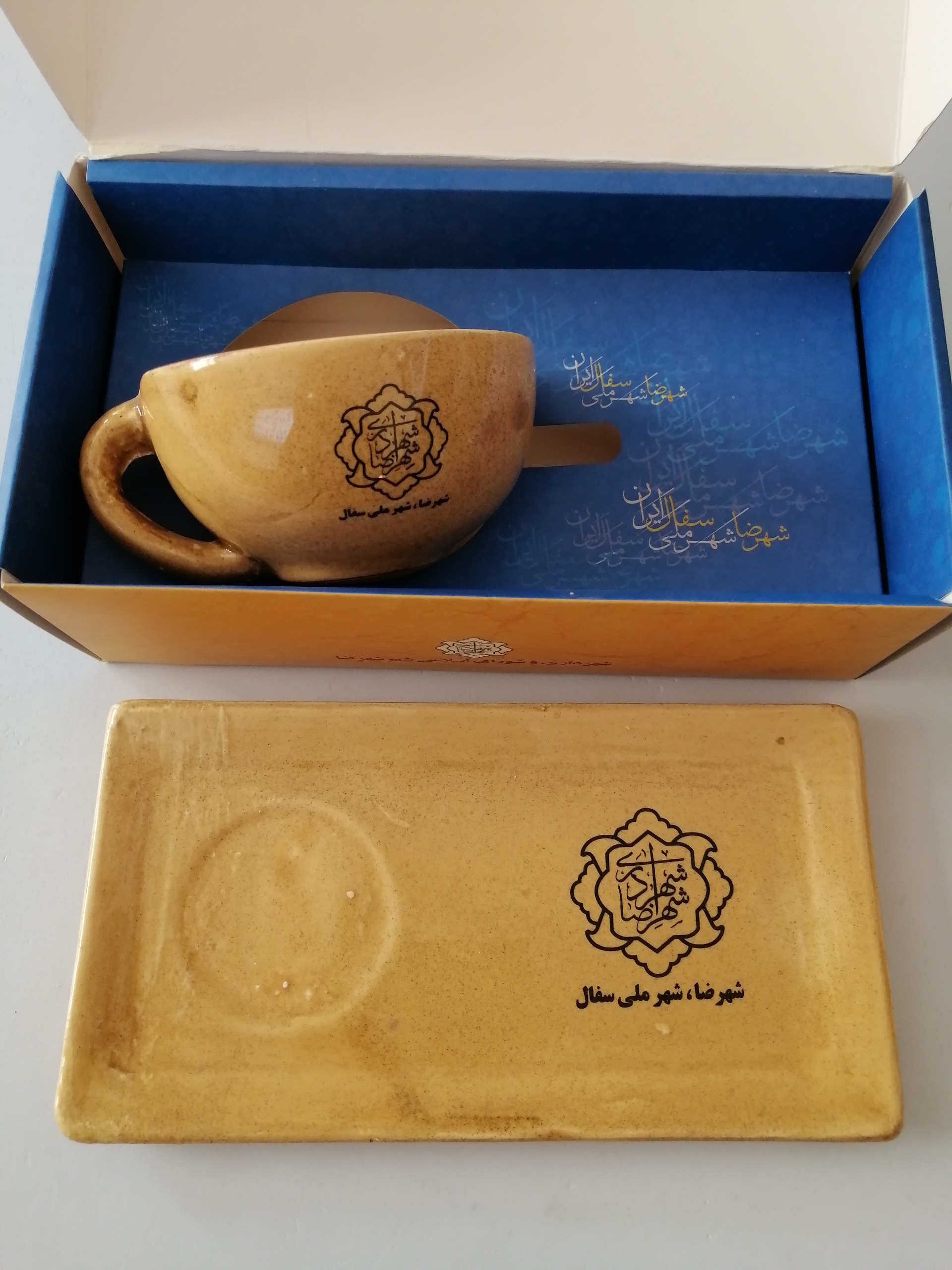 ست فنجان و نلبکی سفالی سوغات شهر شهرضا اصفهان