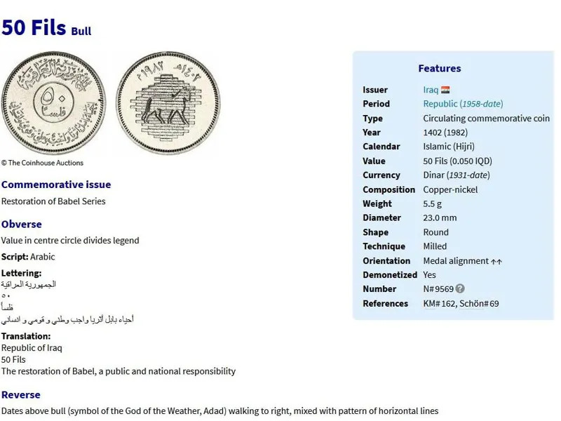 سکه یادبودی 50 فلس عراق 1982-1402 (نایاب) بابل
