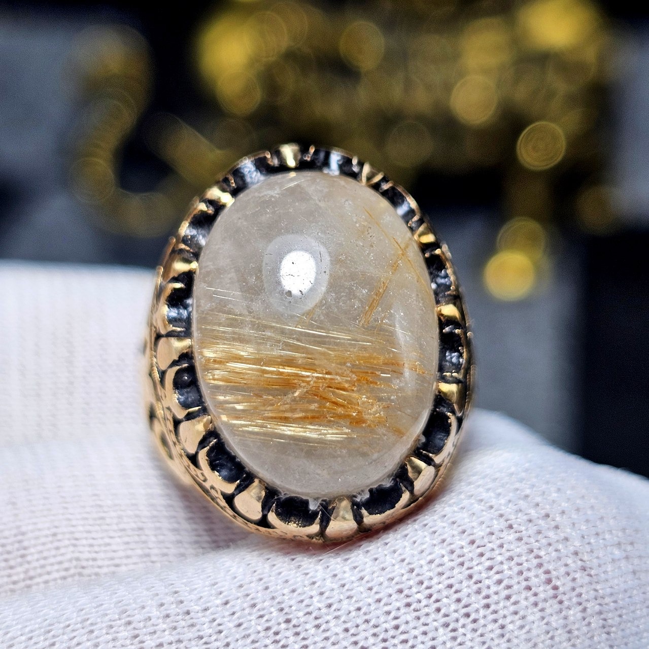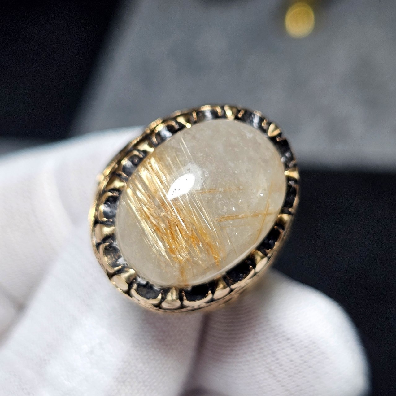 انگشتر طلا روس با سنگ طبیعی در مویی معدنی 35805