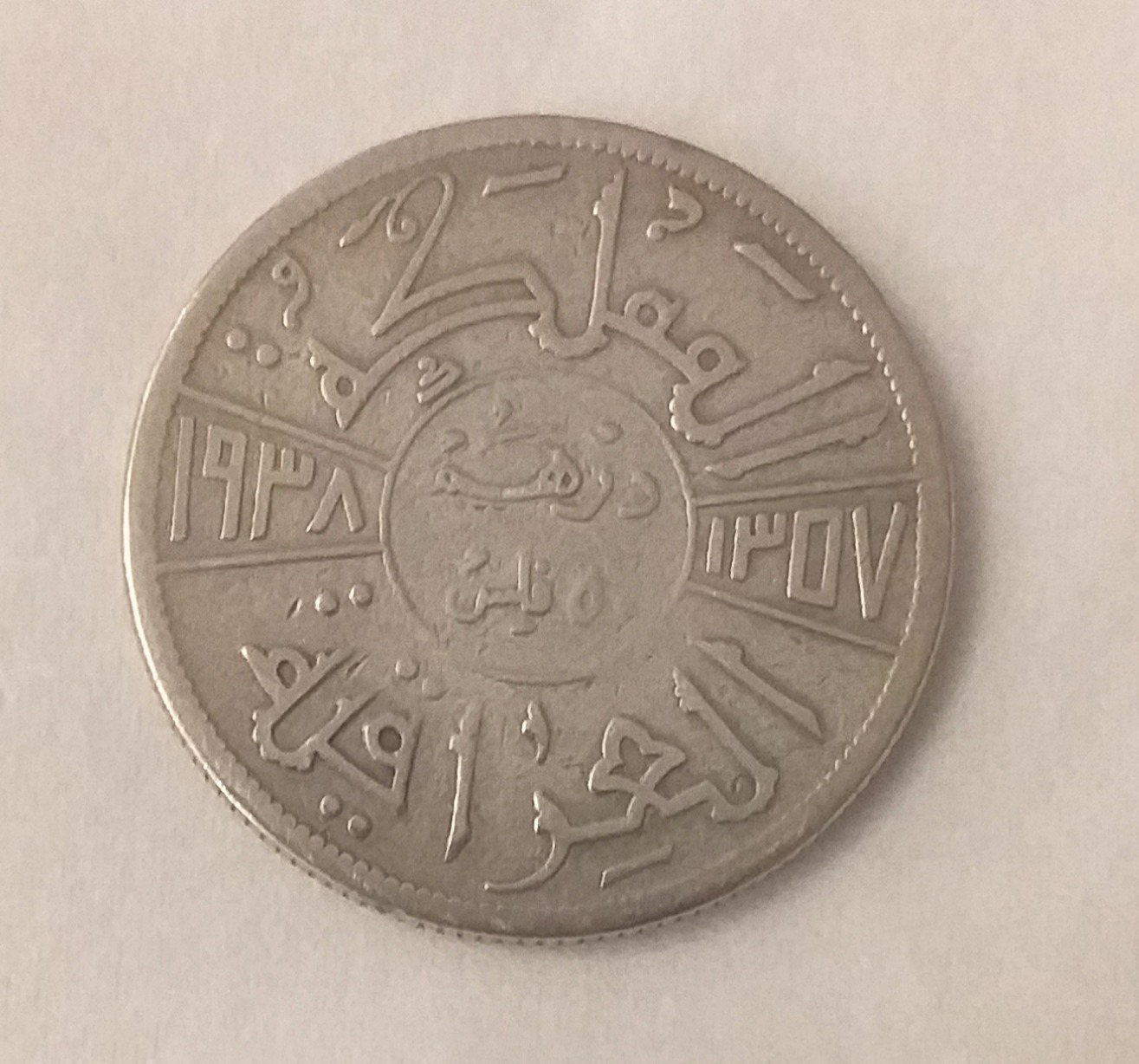 سکه 50 فلس 1938 عراق ، نقره با کیفیت عالی (کد433)