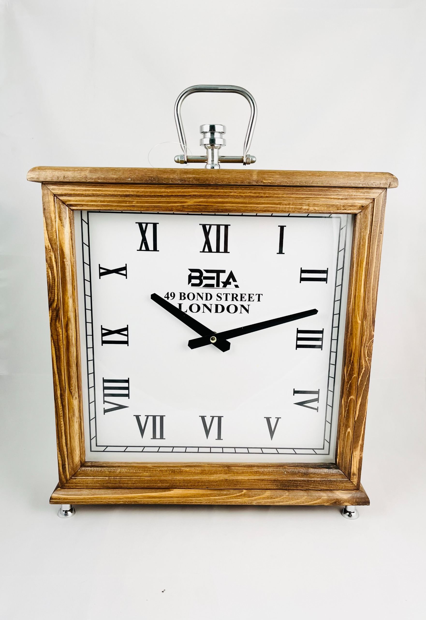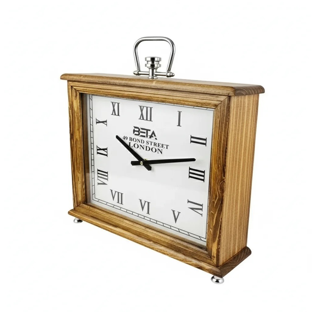 ساعت رومیزی چوبی با رنگ قهوه ای روشن و اعداد رومی