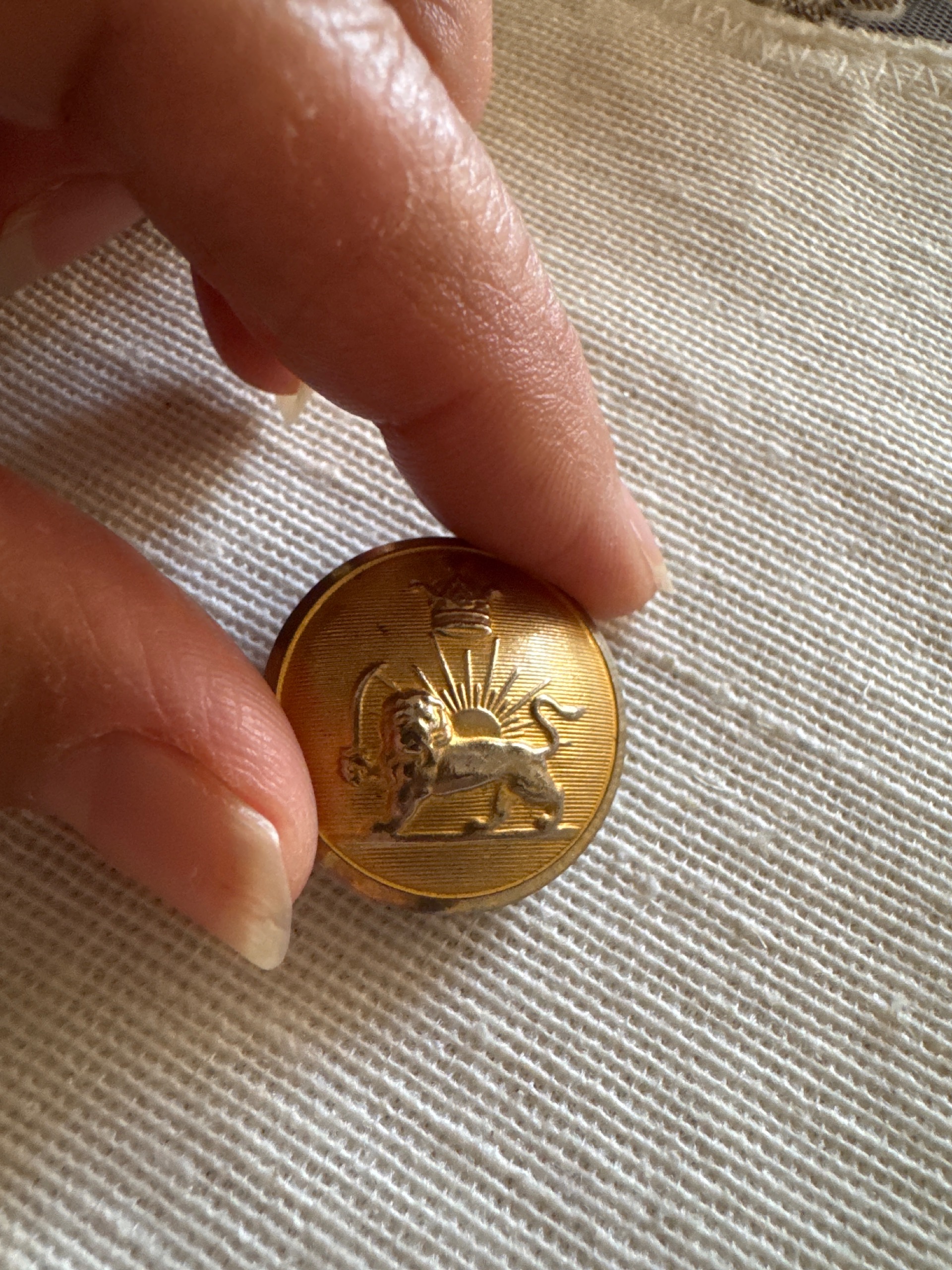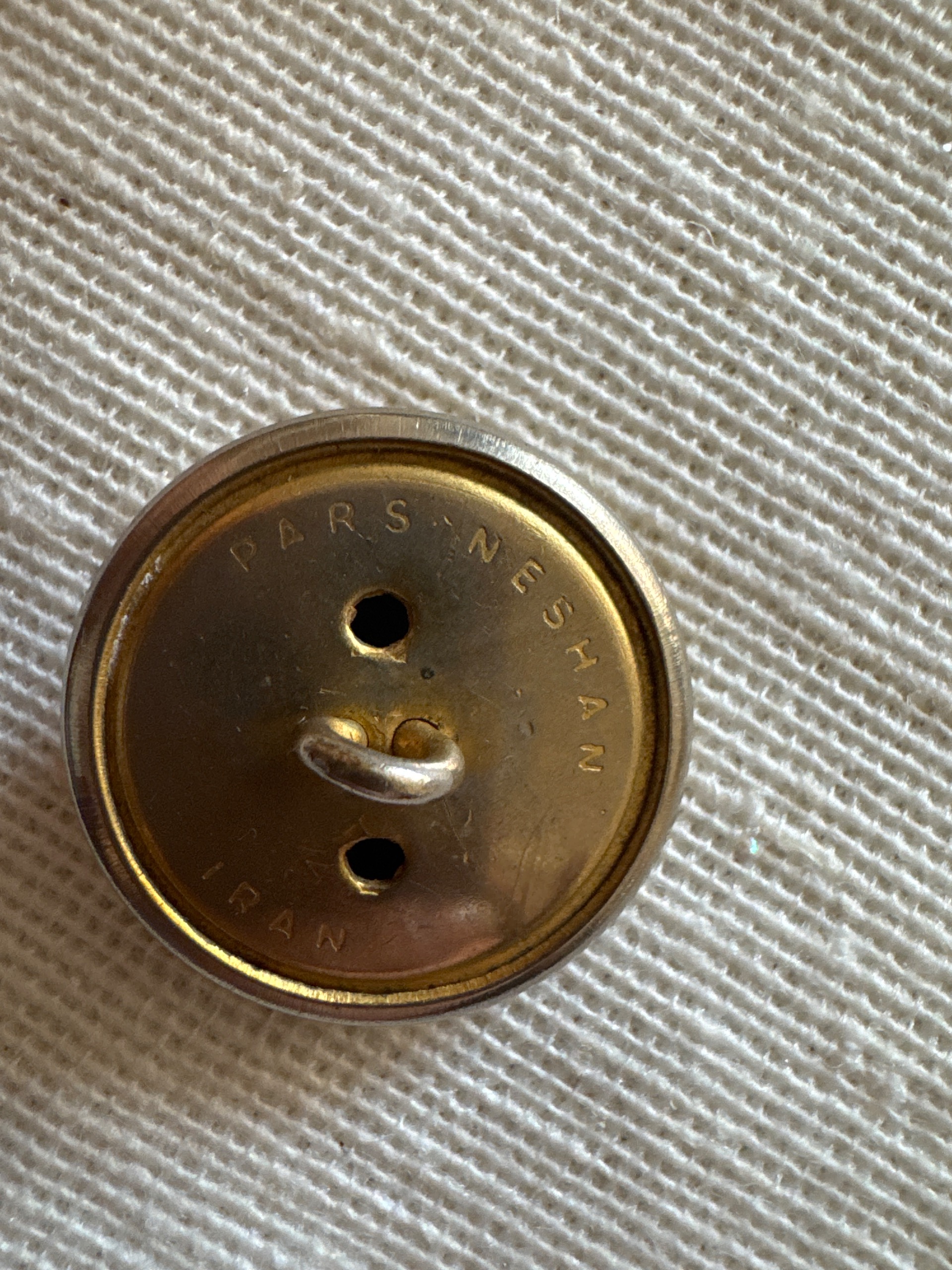دکمه قدیمی با طرح شیروخورشید وتاج که در پشت آن نوشته پارس نشان ایران حک شده است.فروش مطابق تصویر است.