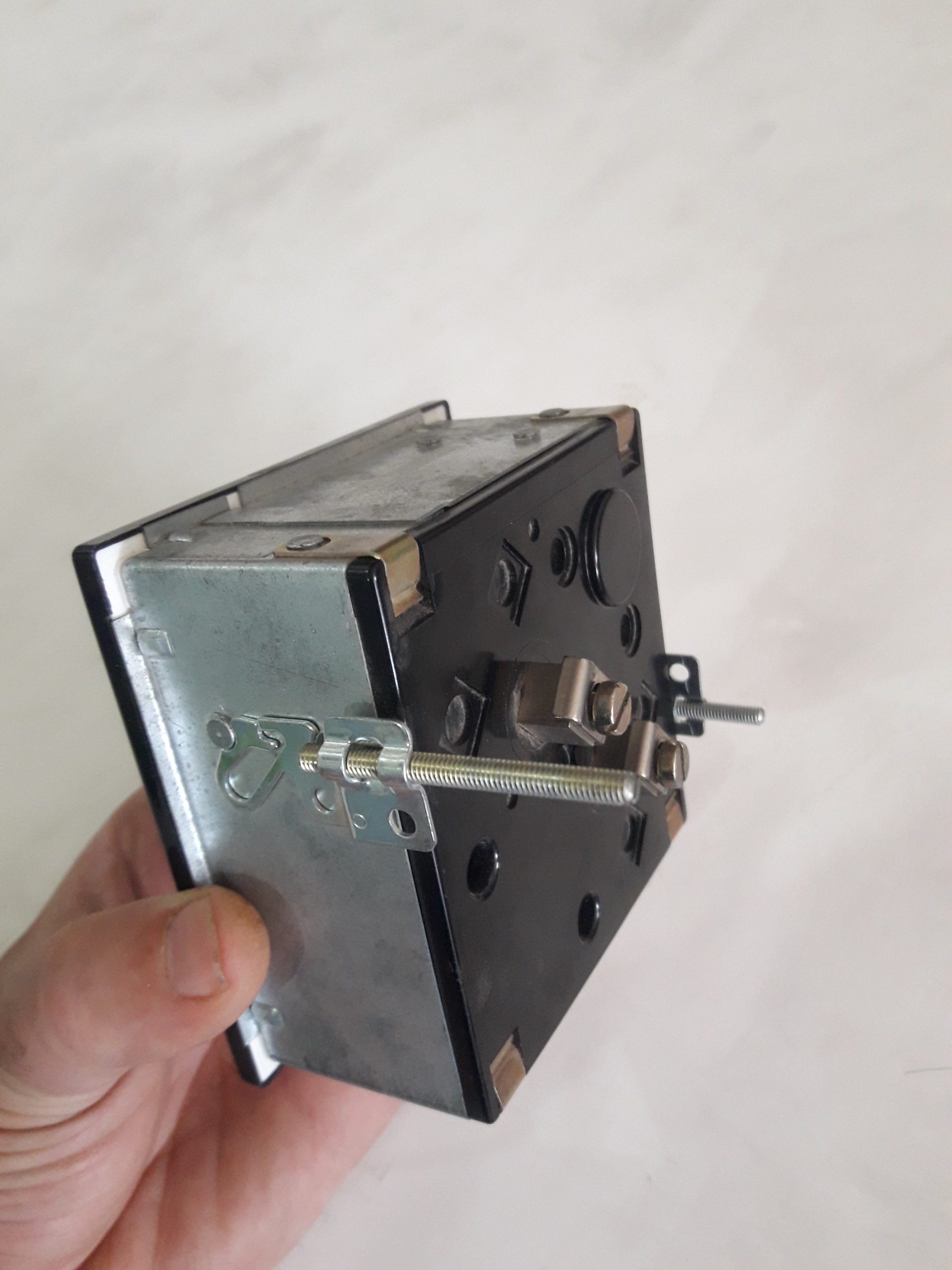 هر دو اسپیسر فلزی پیچی دست نخورده و سالم به بدنه فلزی ولت متر وصل هستند و صفحه نمایش آن پلیمری یا پلاستیک شفاف نیست بلکه شیشه خالص آن از جنس شیشه با شفافیت بالا و بدون اعوجاج است.