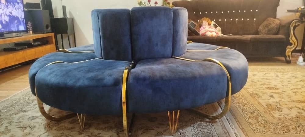 پایه تمام استیل کلاف داخل چوب گردو پارچه رو نانو جنس کفه با فوم سرد مقاوم رنگ مبل سورمه ای به دلایل تغییر جا میفروشم وگرنه یک سال کمتر ازش استفاده شده