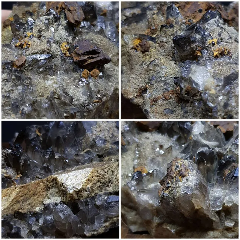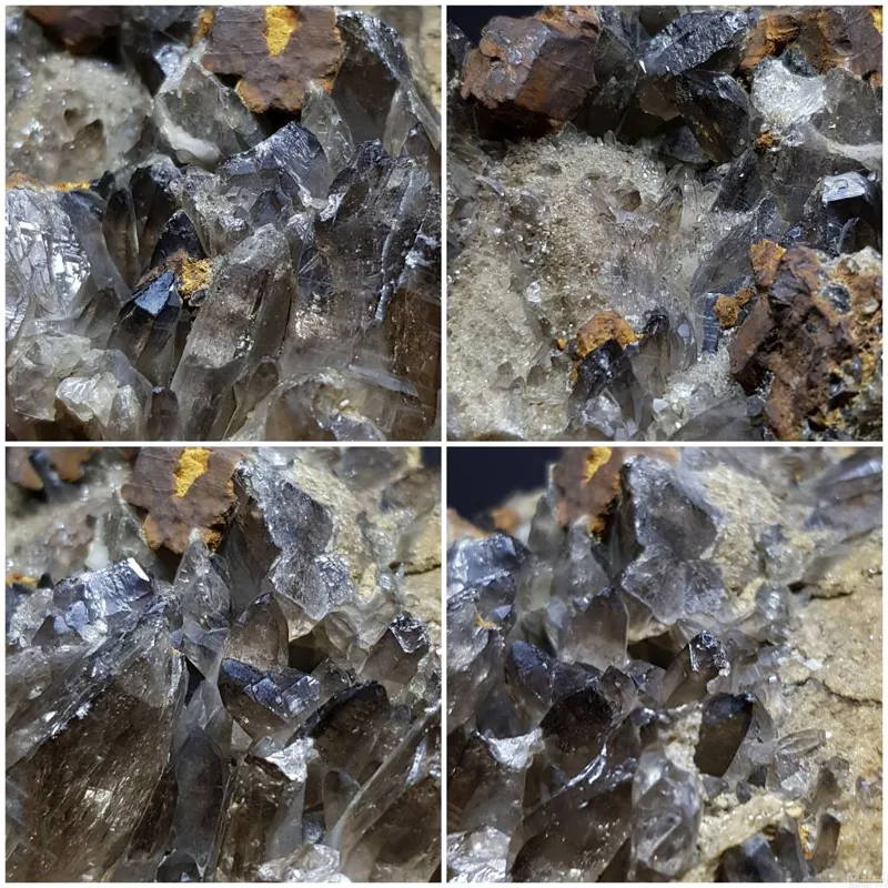 با بیشمار بلور و کریستال کوارتز دودی ریز و درشت براق