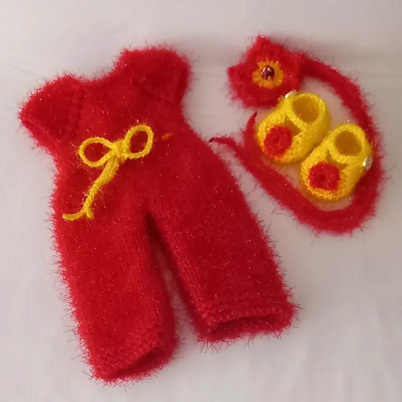 بافته شده با کاموای آکریل. قد: 36 سانت. دارای دو دست لباس. داخل عروسک ازسیم گلسازی استفاده نشده و برای کودکان بسیار مناسب و بی خطر است