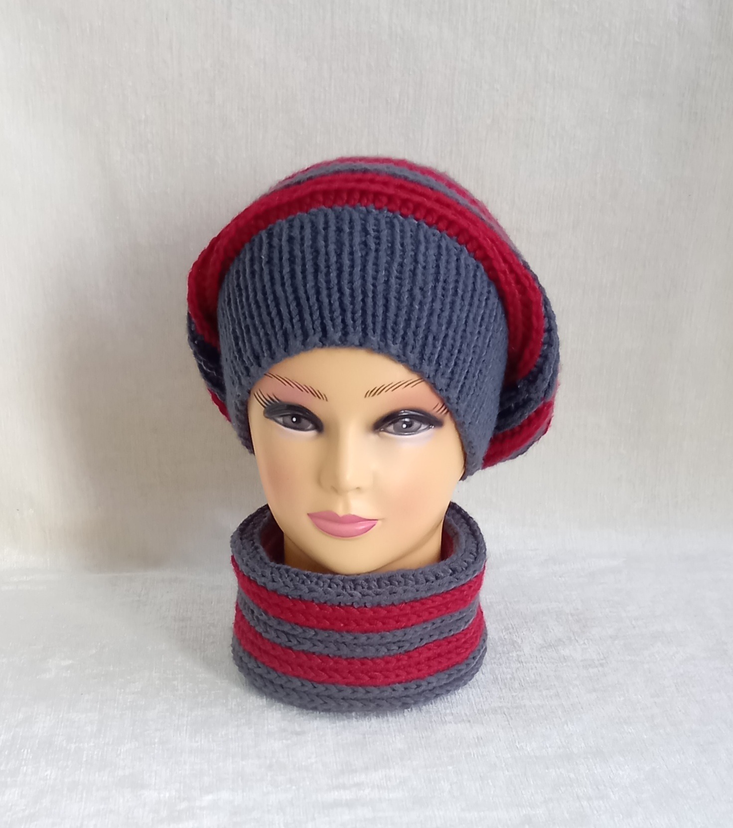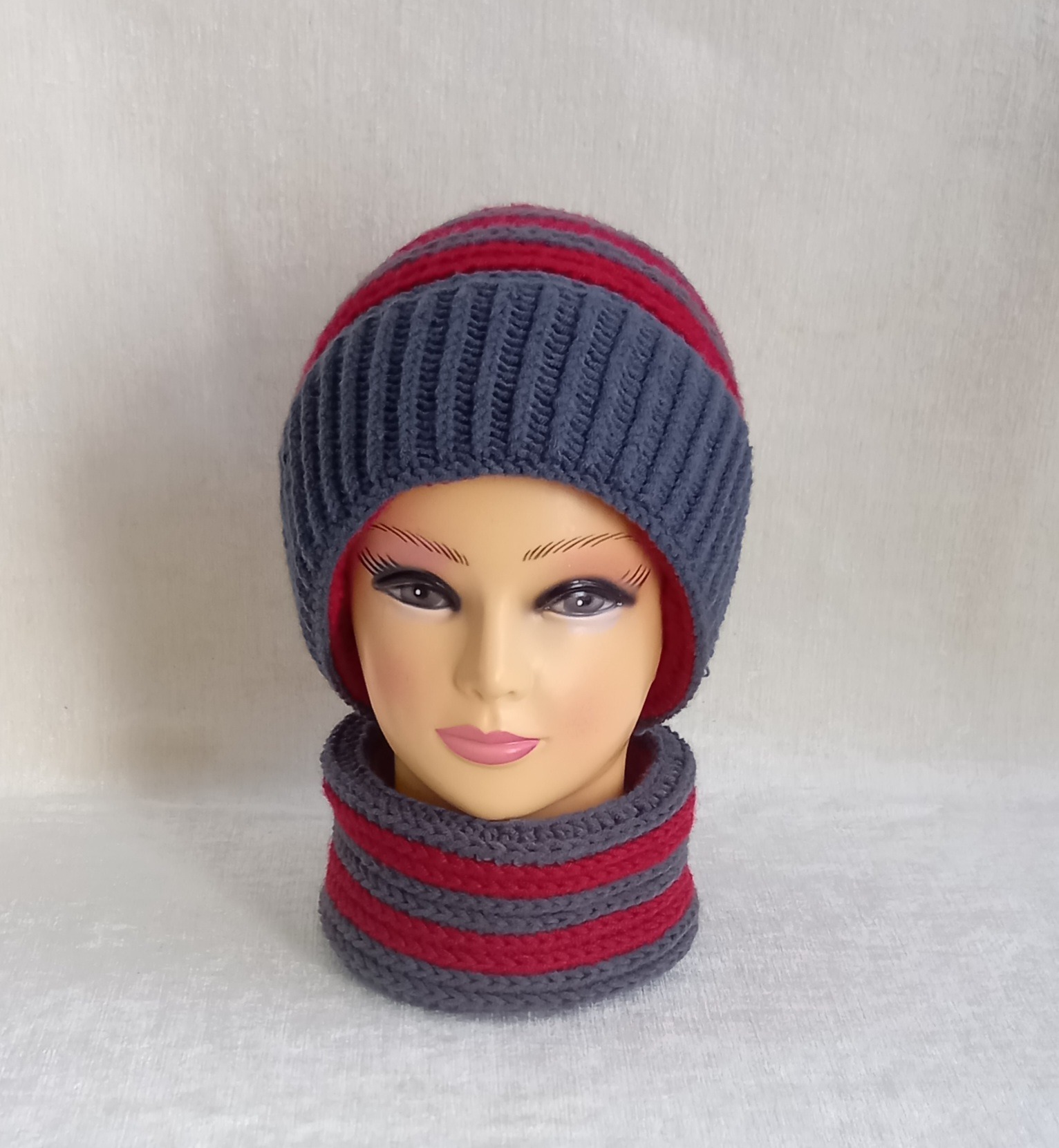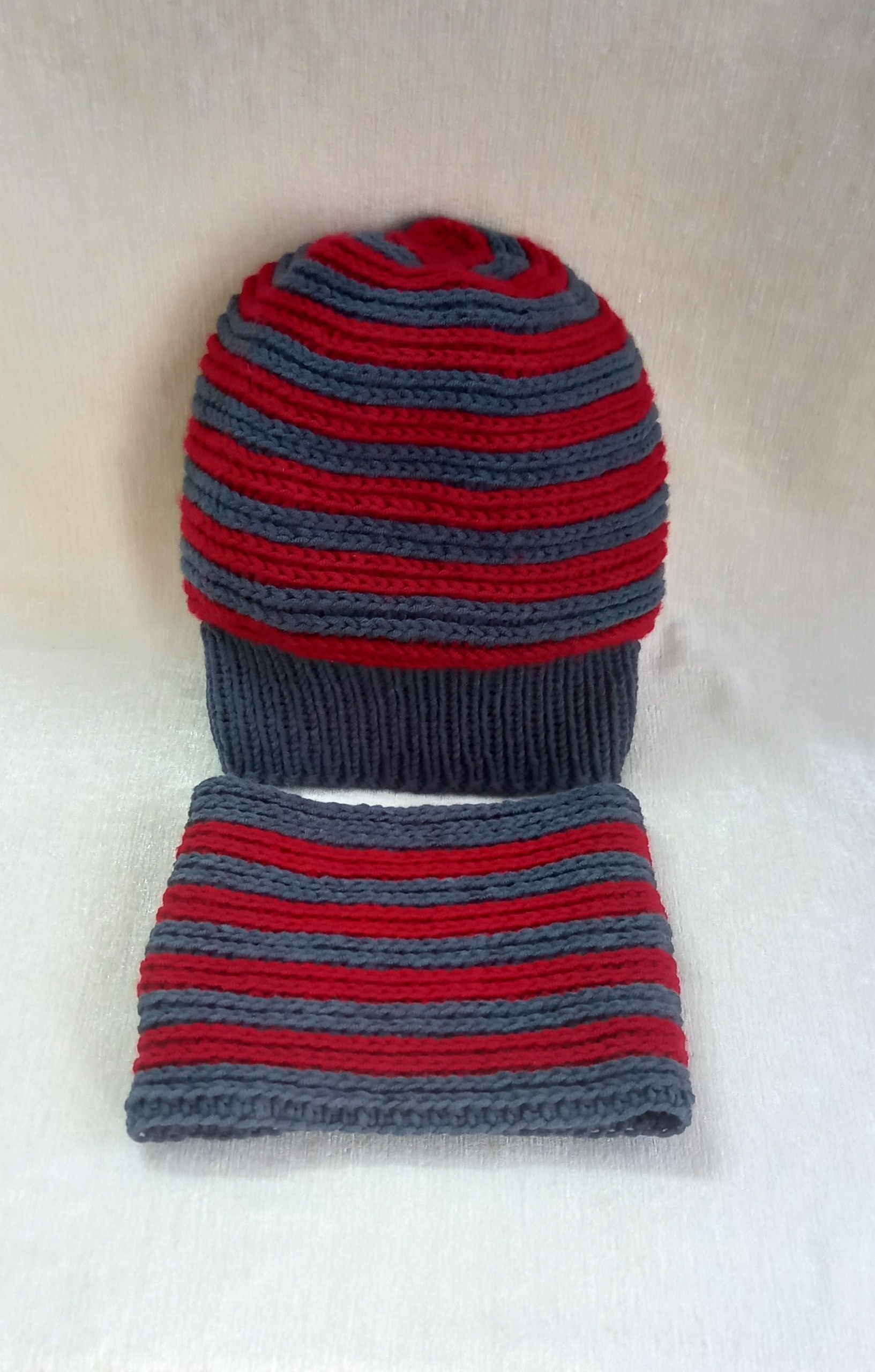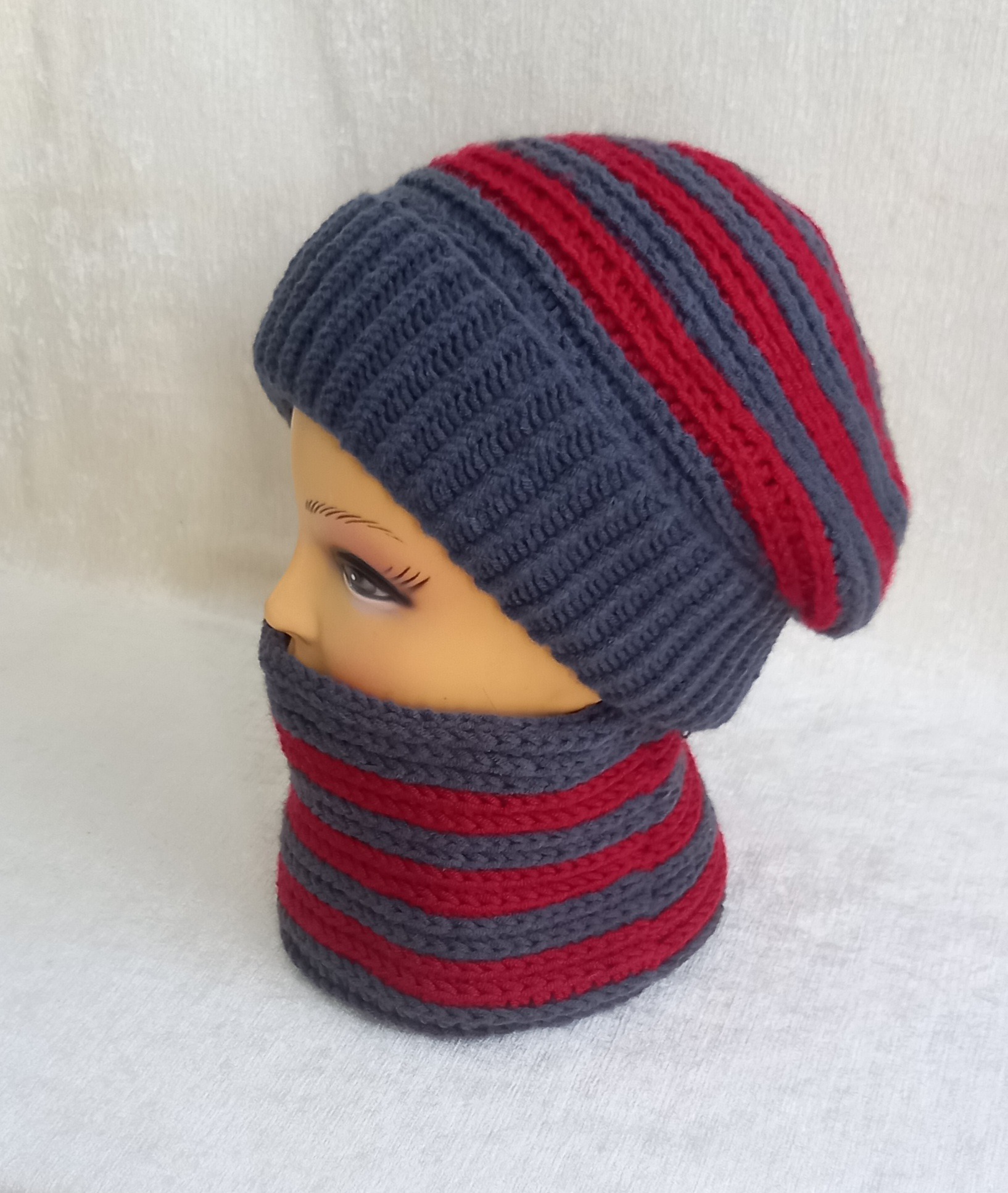 به صورت دو رنگ بافته شده (توسی _قرمز) رنگها در تصویر مشخص است . نرم و گرم لطیف و مناسب برای دور سر 55 تا60 سانت .