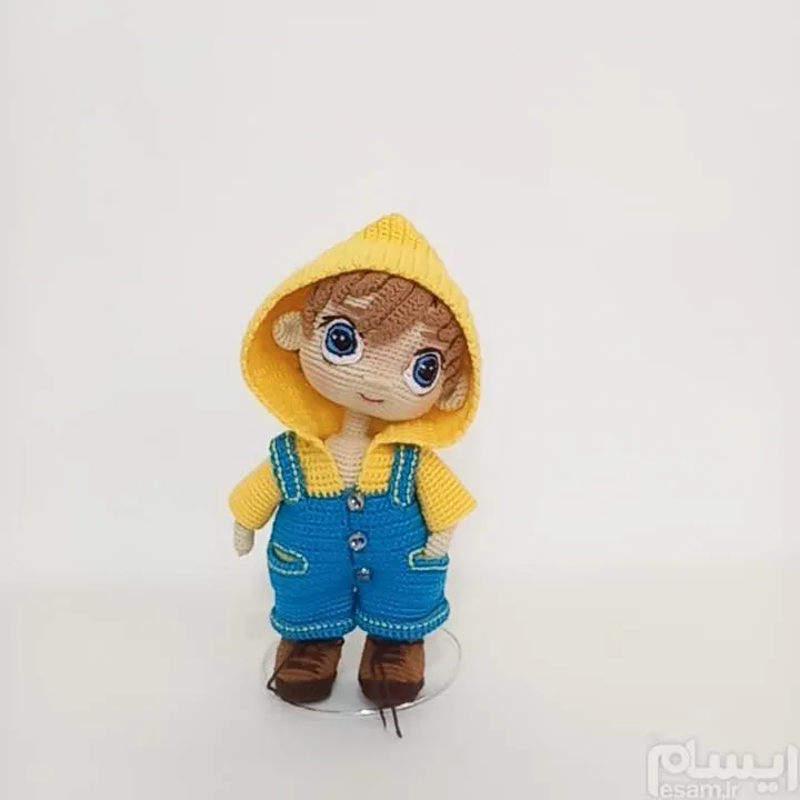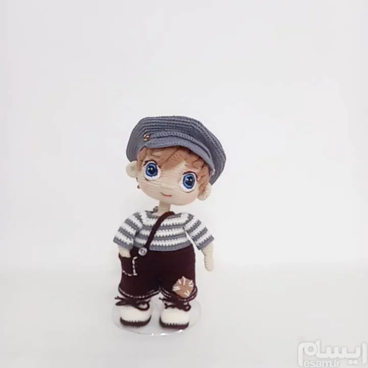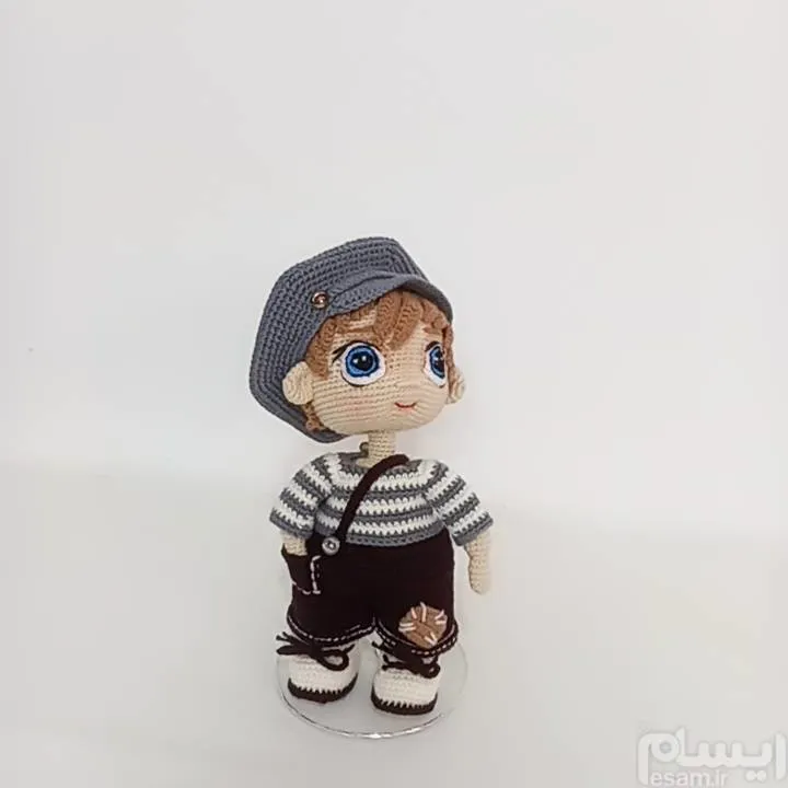 عروسک بافتنی پسر. بافته شده با کاموای آکریل.سر عروسک چرخشی است و قابل چرخش به چپ و راست میباشد.