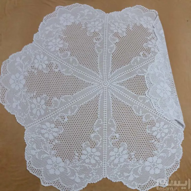 رومیزی دستبافت . بافته شده با نخ آلیزدیوا . رنگ سفید . اندازه : 185 سانت . مخصوص میزهای گرد و بزرگ