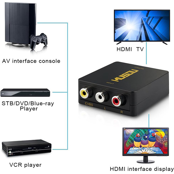 (اندازه کوچک): جعبه مبدل RCA به HDMI بسیار کم، قابل حمل و انعطاف پذیر است، و با جذابیت عمل می کند
