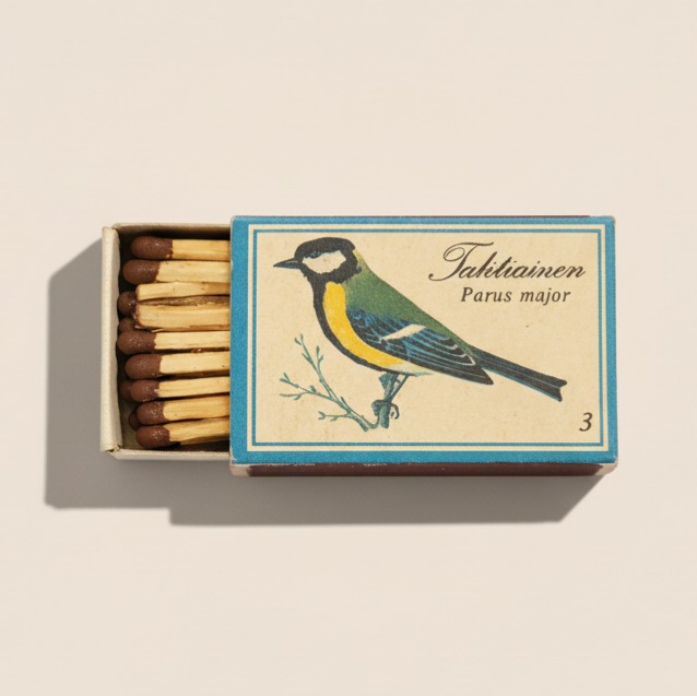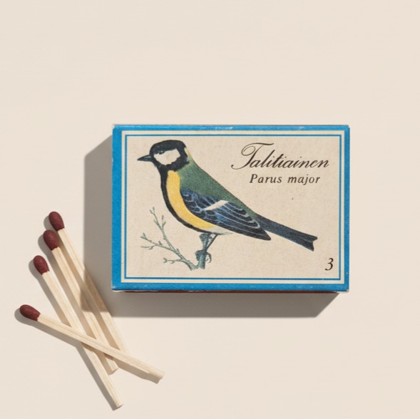 قوطی کبریت vintage فنلاندی، طرح پرنده Talitiainen