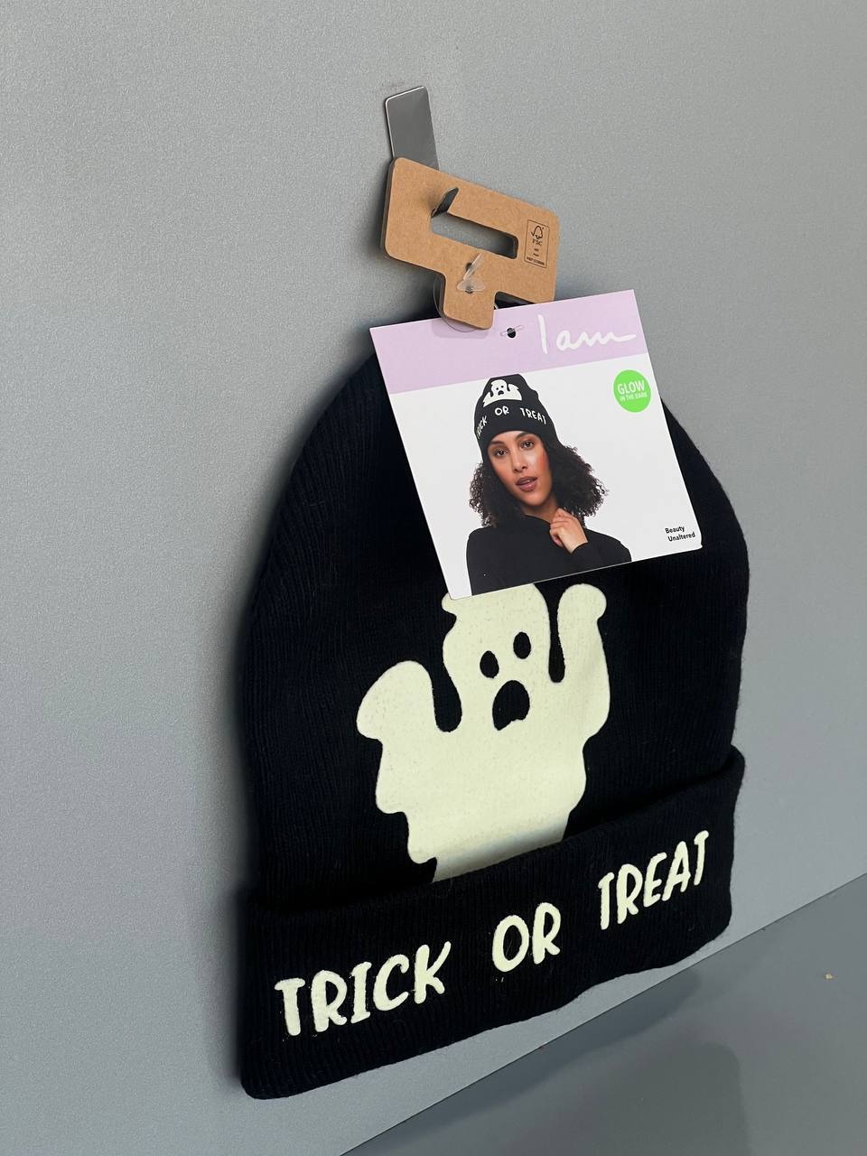 پیام فصل: لبه تاشده کلاه با عبارت معروف "TRICK OR TREAT" با فونت درشت و شبرنگ تزئین شده است. این شعار، حال و هوای جشن و ماجراجویی را به خوبی منتقل میکند.