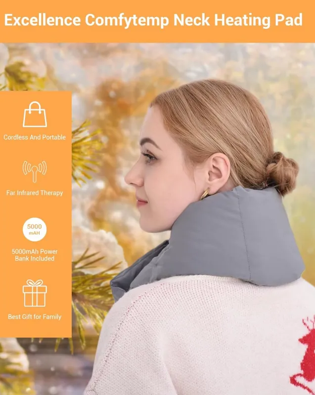 گرم نگه می دارد. و Comfytemp استفاده از باتری 5000 میلیآمپر ساعتی را برای افزایش زمان استفاده بهینه میکند، بنابراین پد گرمکن گردن بیسیم را میتوان در هر مکانی بدون برق استفاده کرد و به شما این امکان را میدهد که در زمستان سرد بیترس بیرون بروید.