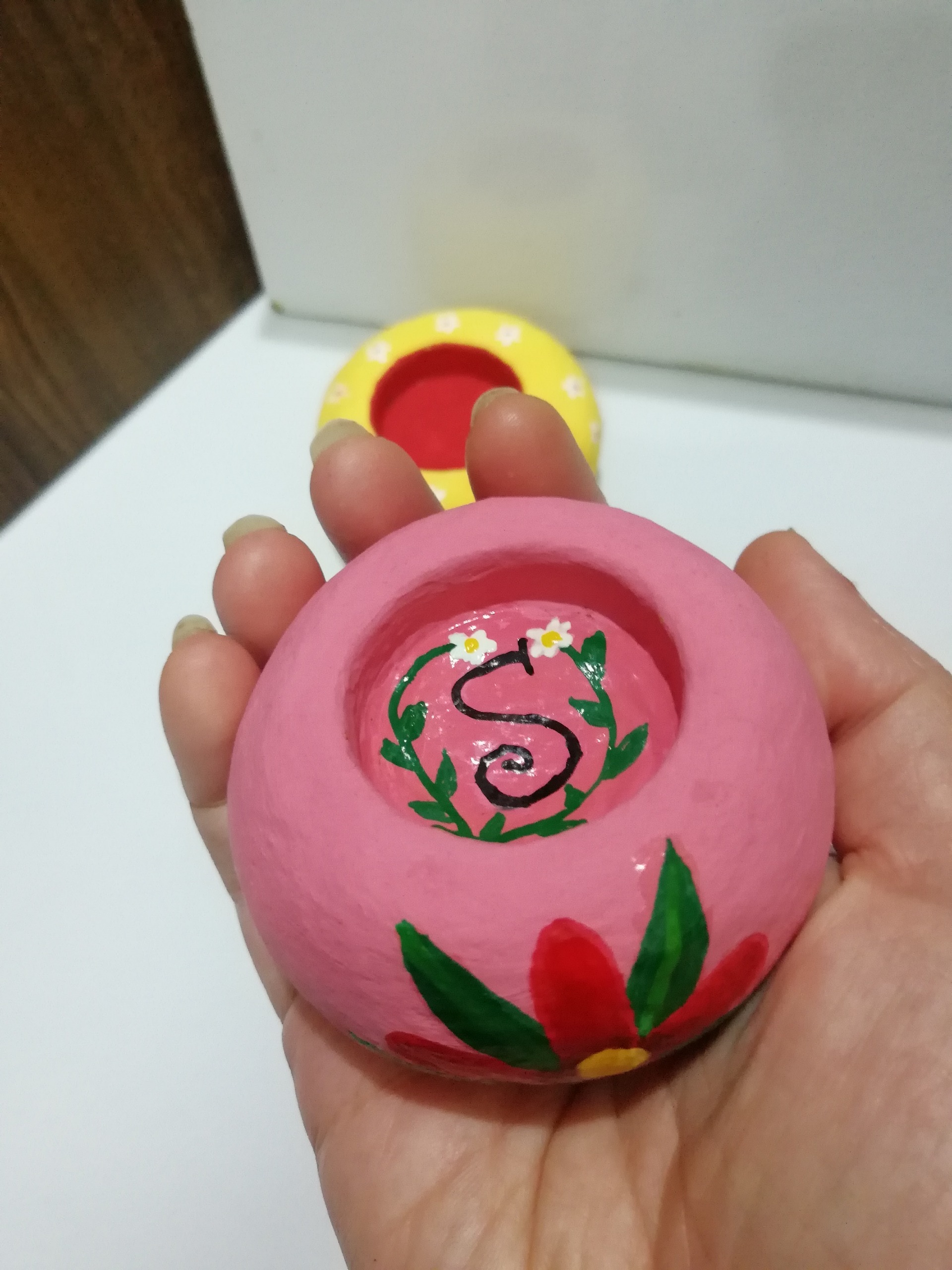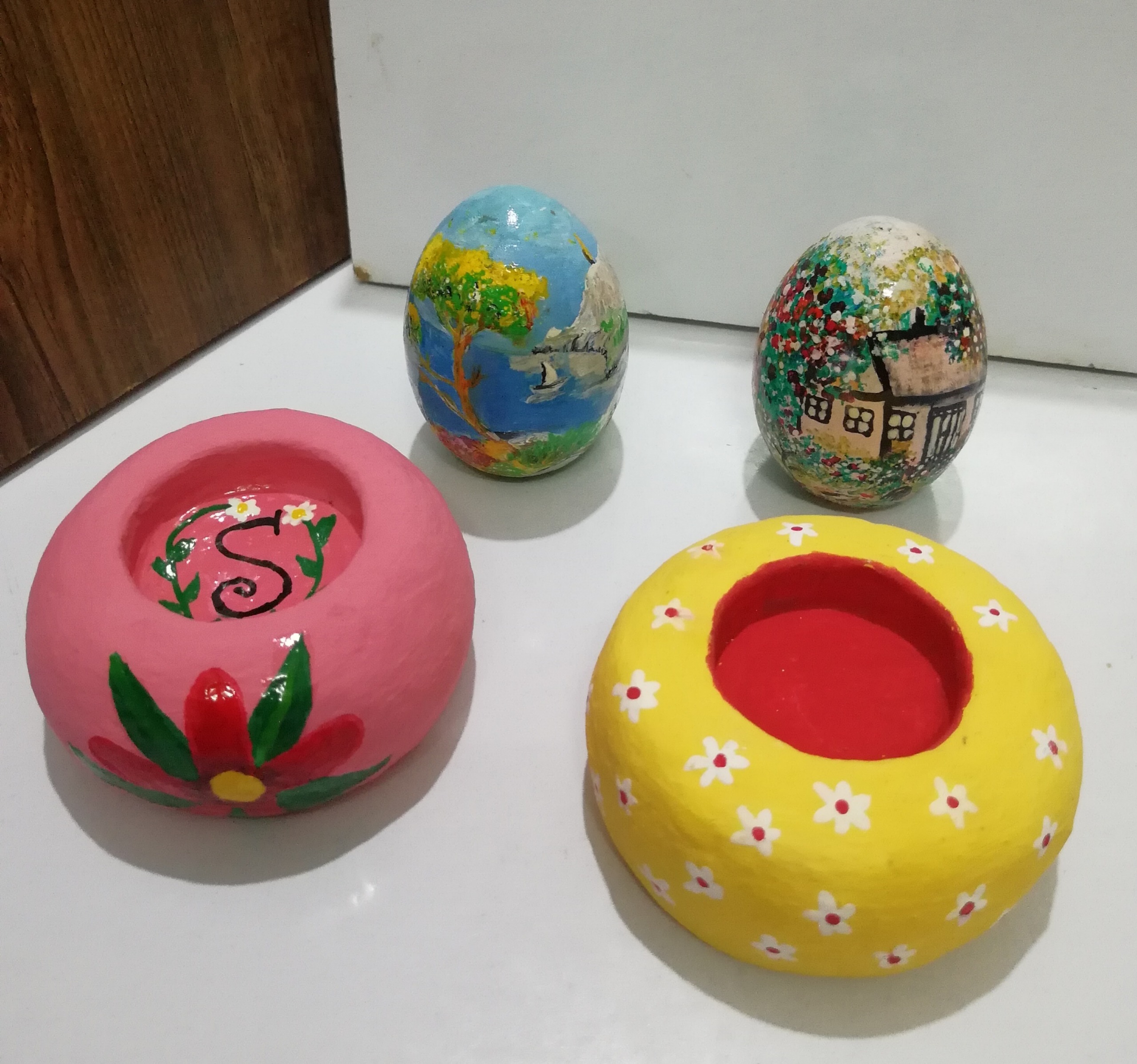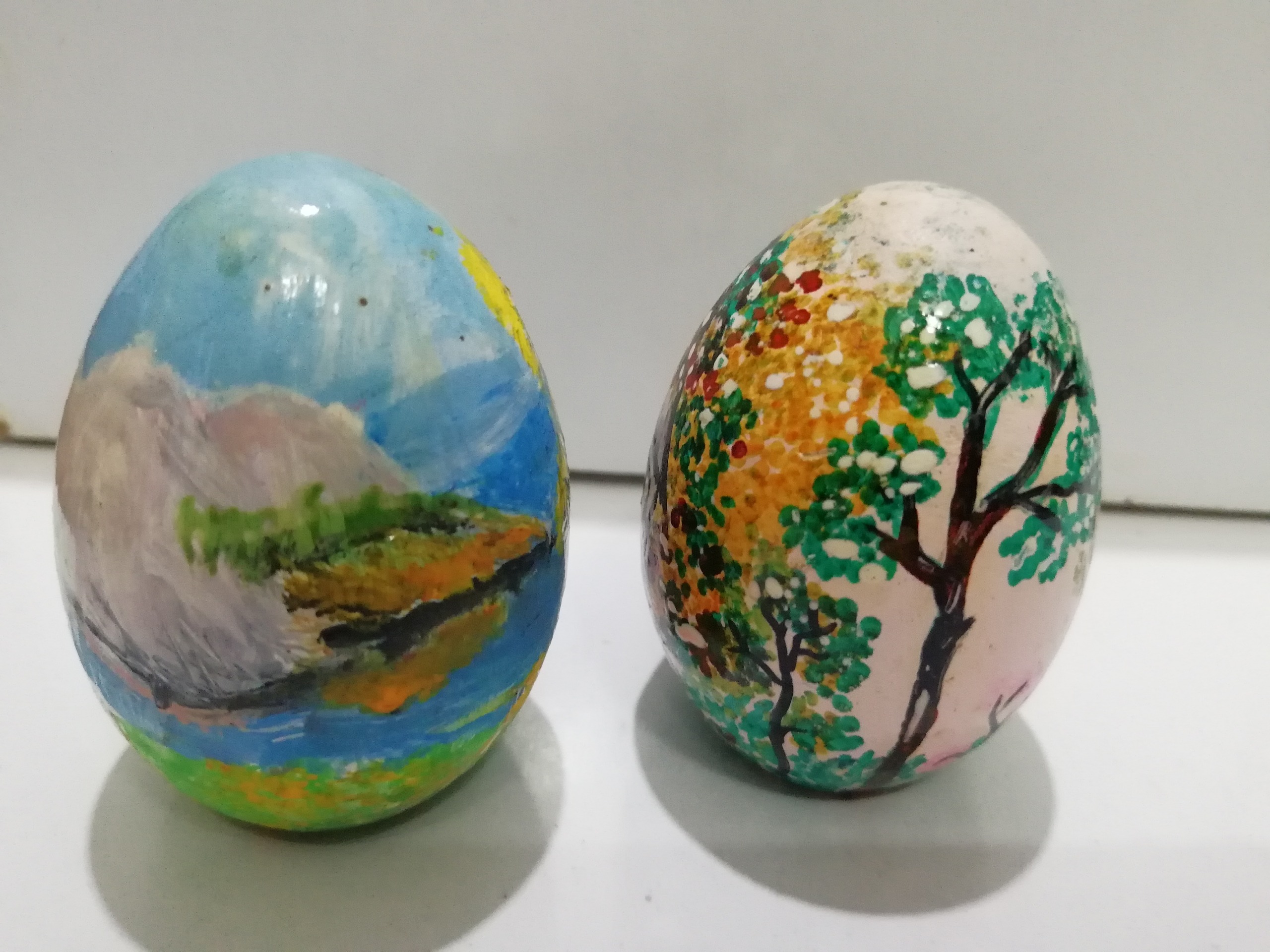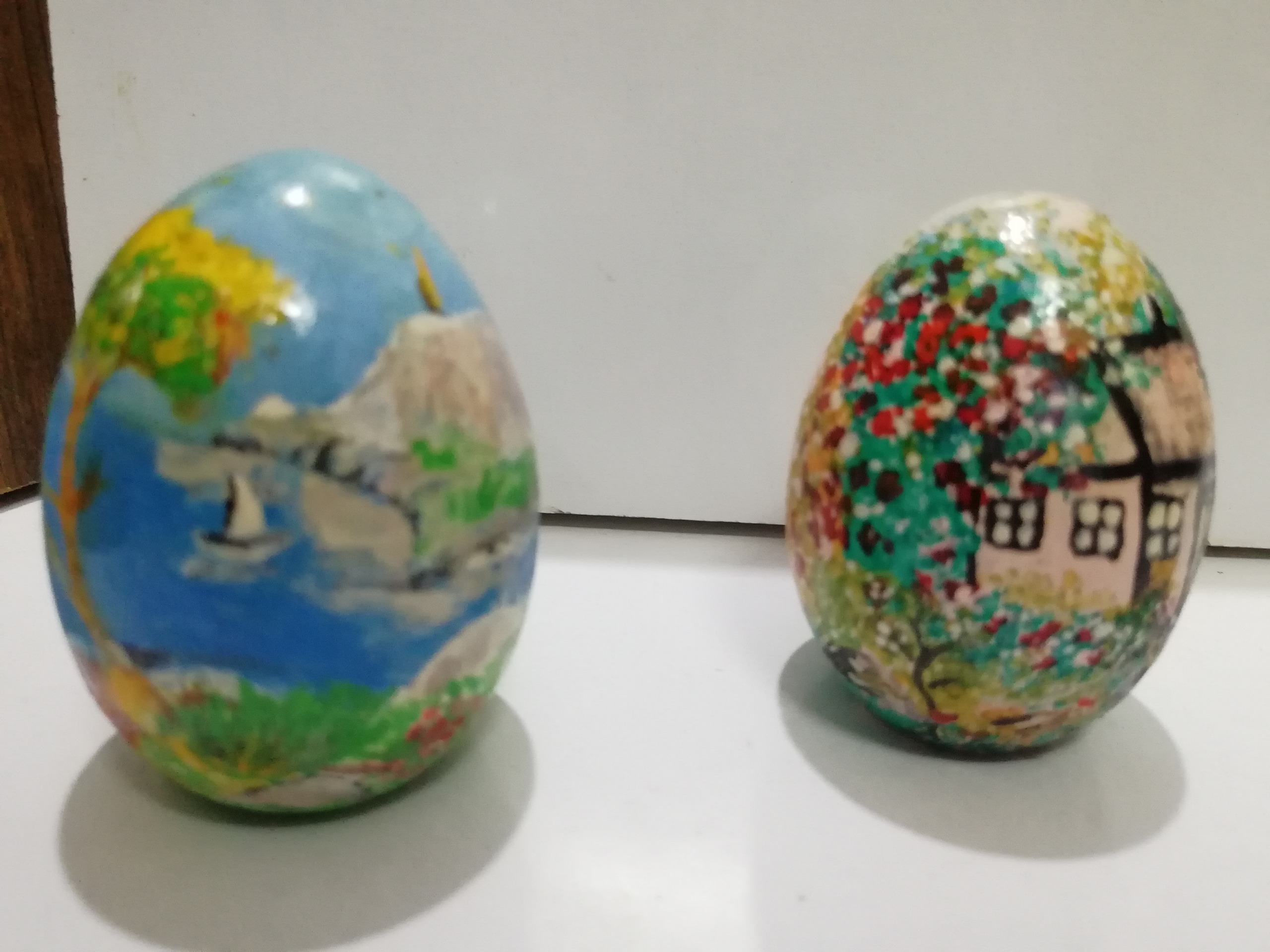 جاشمعی از گچ یا پودرسنگه و تخم مرغ ها از سفال کار دسته با رنگ اکریلیک رنگ شده