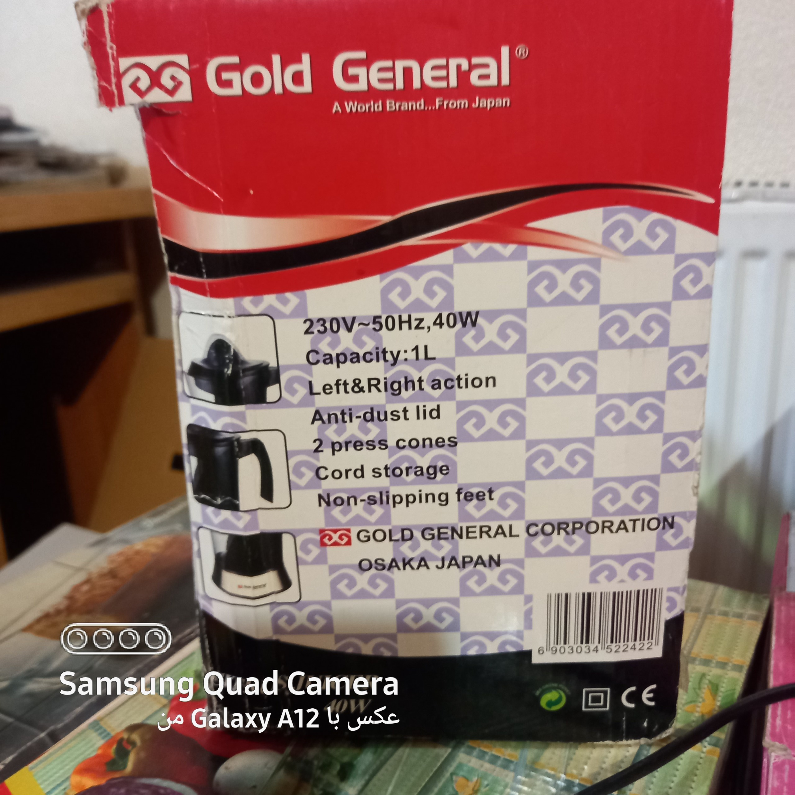 آب پرتقال گیری کیفیت عالی مارک گلد جنرال هم مناسب استفاده وهم جهیزیه نو استفاده نشده برای قدیم بوده قیمت یه جوری گذاشتم که خواستید ببرید خودش ویه کارتون