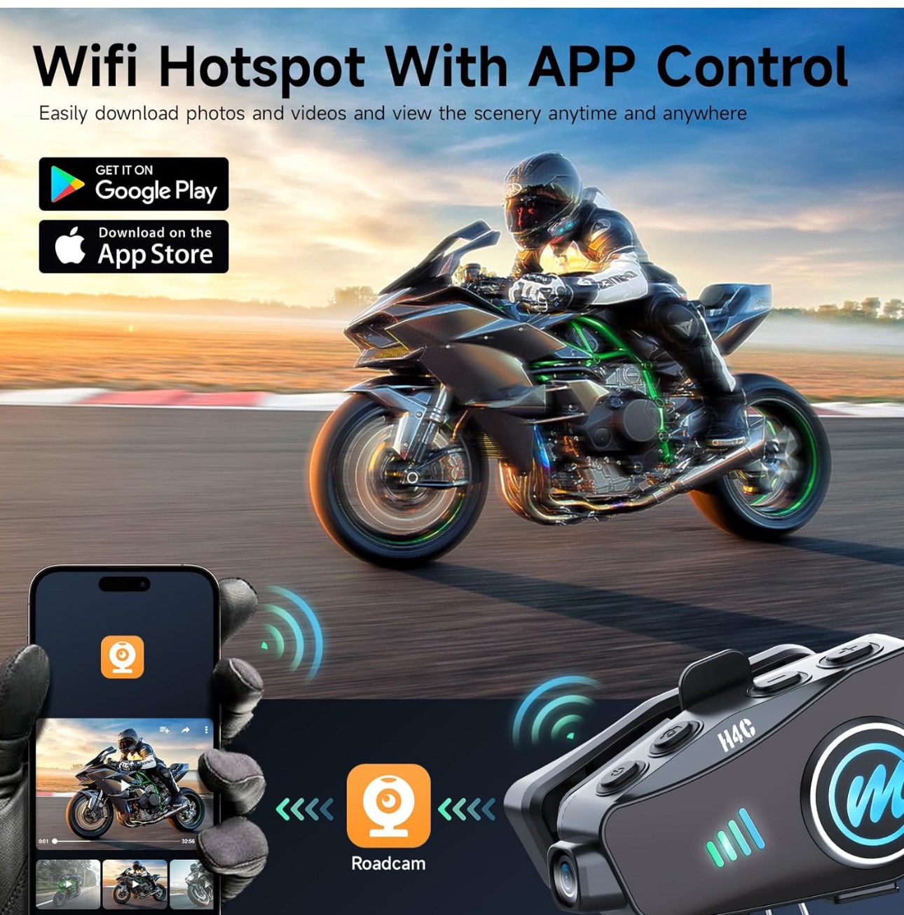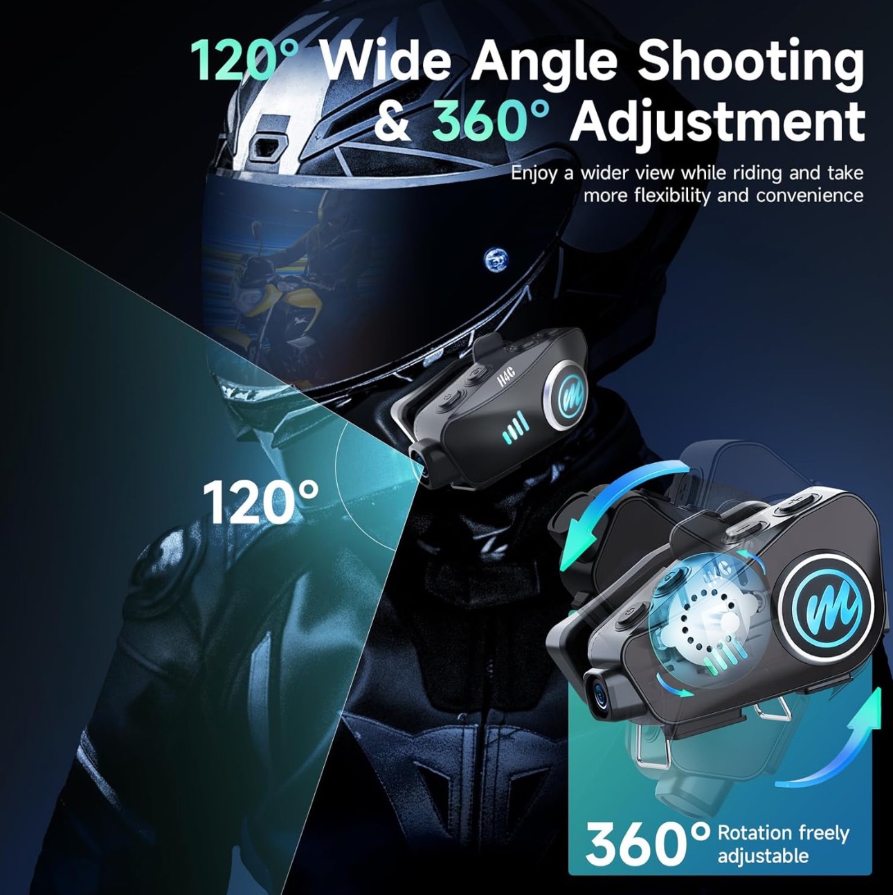 دوربین HD با وضوح 1080P و زاویه دید 120 درجه با یک دوربین HD 1080P داخلی، هدست کلاه ایمنی موتورسیکلت لحظات سواری شما را به وضوح ثبت میکند. لنز با زاویه دید 120 درجه و چرخش 360 درجه بدنه و همچنین تا 6.5 ساعت ضبط به شما امکان میدهد جزئیات بیشتری را ثبت کنید. در عین حال، به لطف عملکرد مناسب WIFI، موتورسواران میتوانند به سادگی برنامه "RoadCam" را روی تلفنهای همراه خود دانلود کنند تا فیلمها و عکسهای ضبط شده را در هر زمان و هر مکان مشاهده و دانلود کنند.