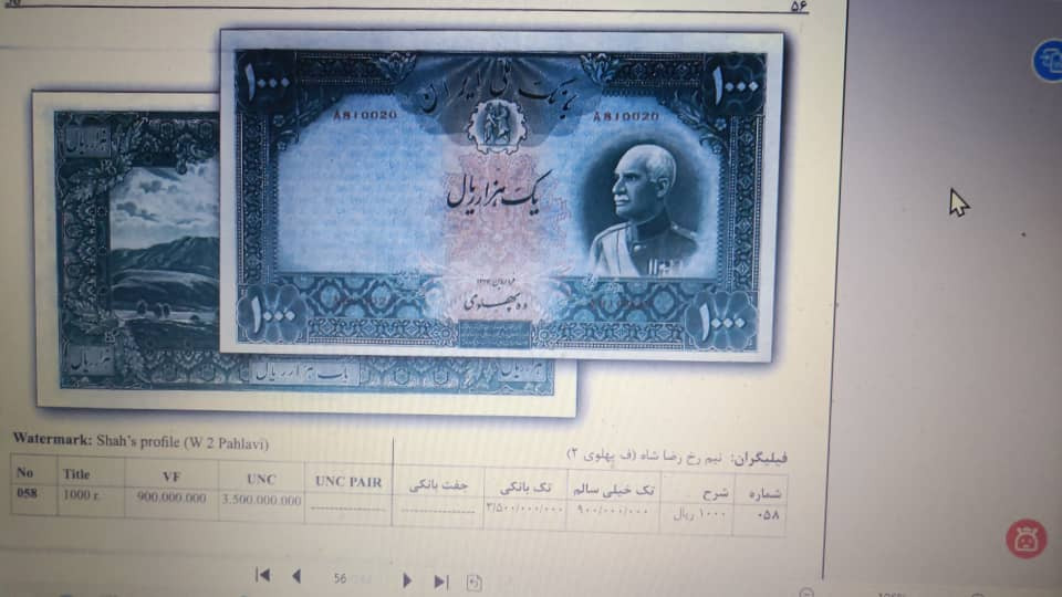 1000ریال رضا شاه پهلوی شماره 58 در کتاب اسکناس 65٪