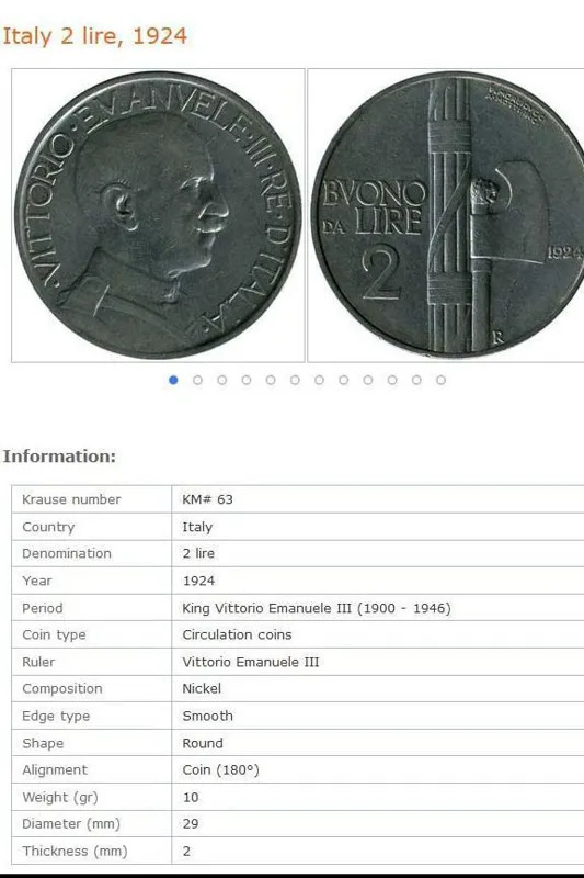سکه 2 لیر ایتالیا 1924 امانوئل سوم (نایاب)