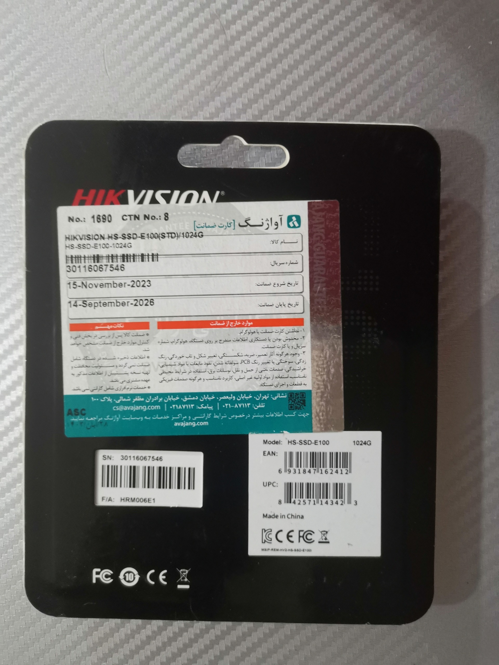 تاریخ اتمام گارانتی 14 سپتامبر 2026