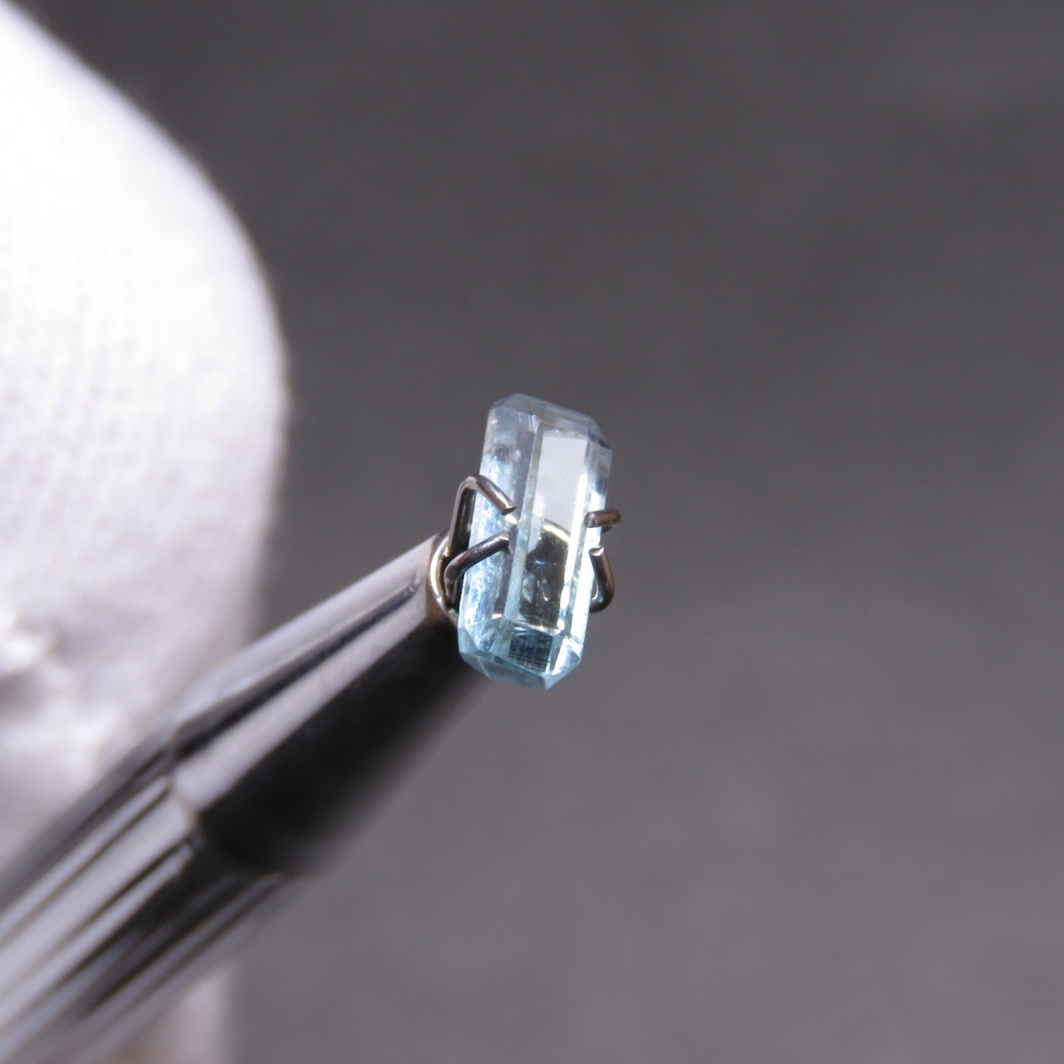 تورمالین صددرصد معدنی و طبیعی افغانستان بدون بهسازی و ان هیت کاملا شفاف و رنگ جذاب ابی گرید بالا وزن 0.65 قیراط و ابعاد 3.5*6.5میل