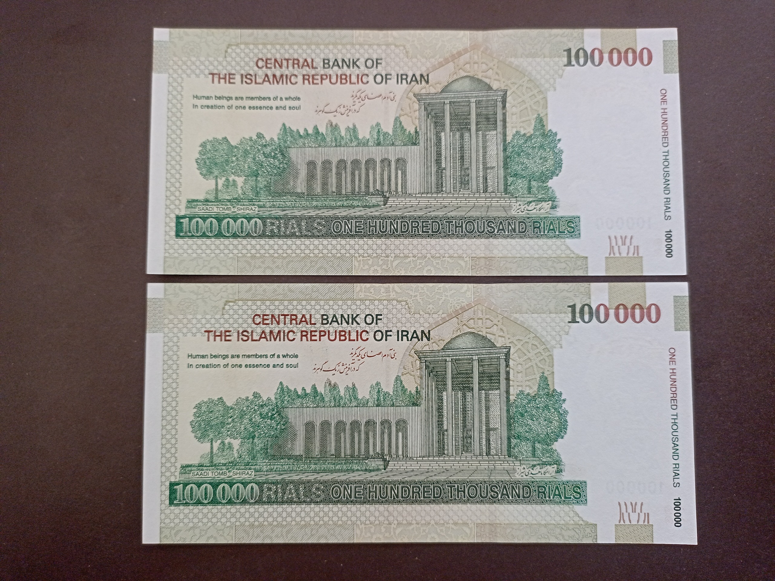 جفت اسکناس 100000 ریال قدیم