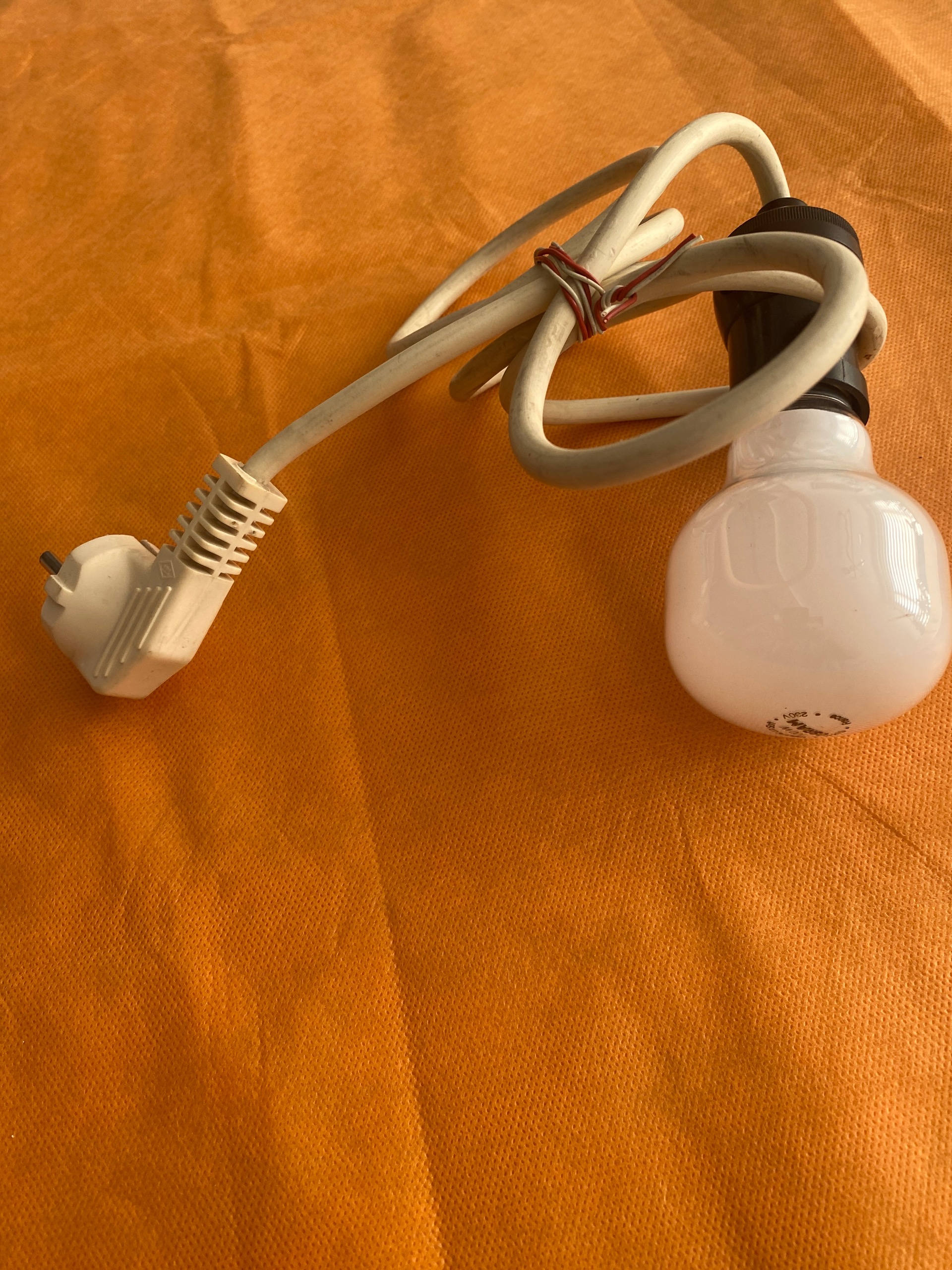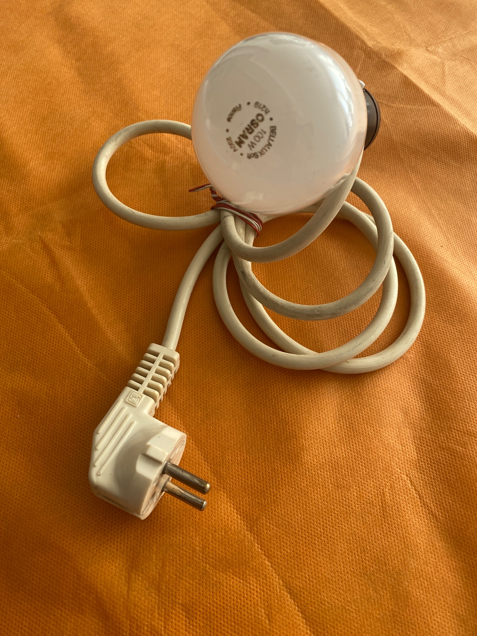 سیم سیار با یک متر و نیم کابل خارجی با دوشاخه خارجی پرس شده همراه باریک عدد سرپیچ خارجی کلید دار روی ان باضلفه یکدعدد لامپ OSRAM خارجی