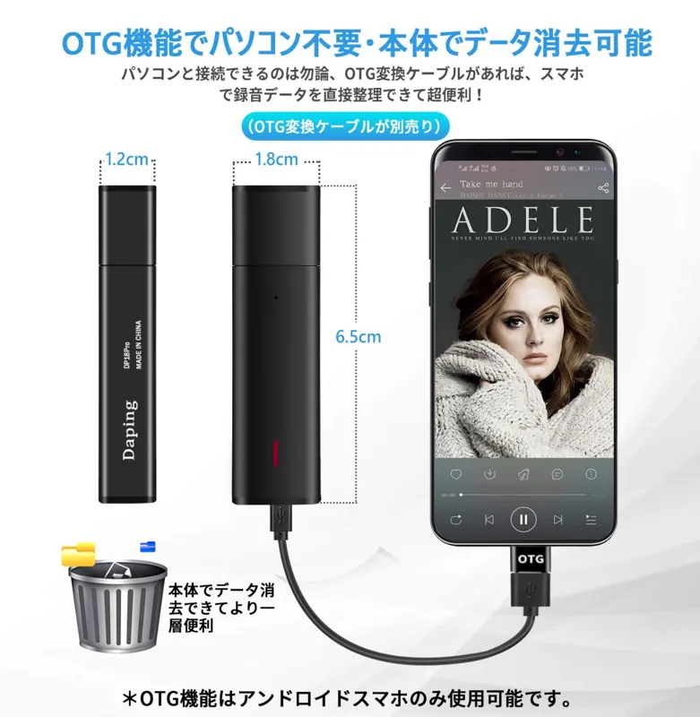 که حتی در جلسات طولانی، فضای ذخیرهسازی خود را هدر نمیدهید. همچنین دارای 7 سطح تنظیم است، بنابراین میتوانید صداهای کوچک تا 30 دسیبل را ضبط کنید. سازگار با OTG، بدون نیاز به کامپیوتر، فایلهای ضبط شده را مستقیماً روی تلفن خود گوش دهید و حذف کنید، بسیار
