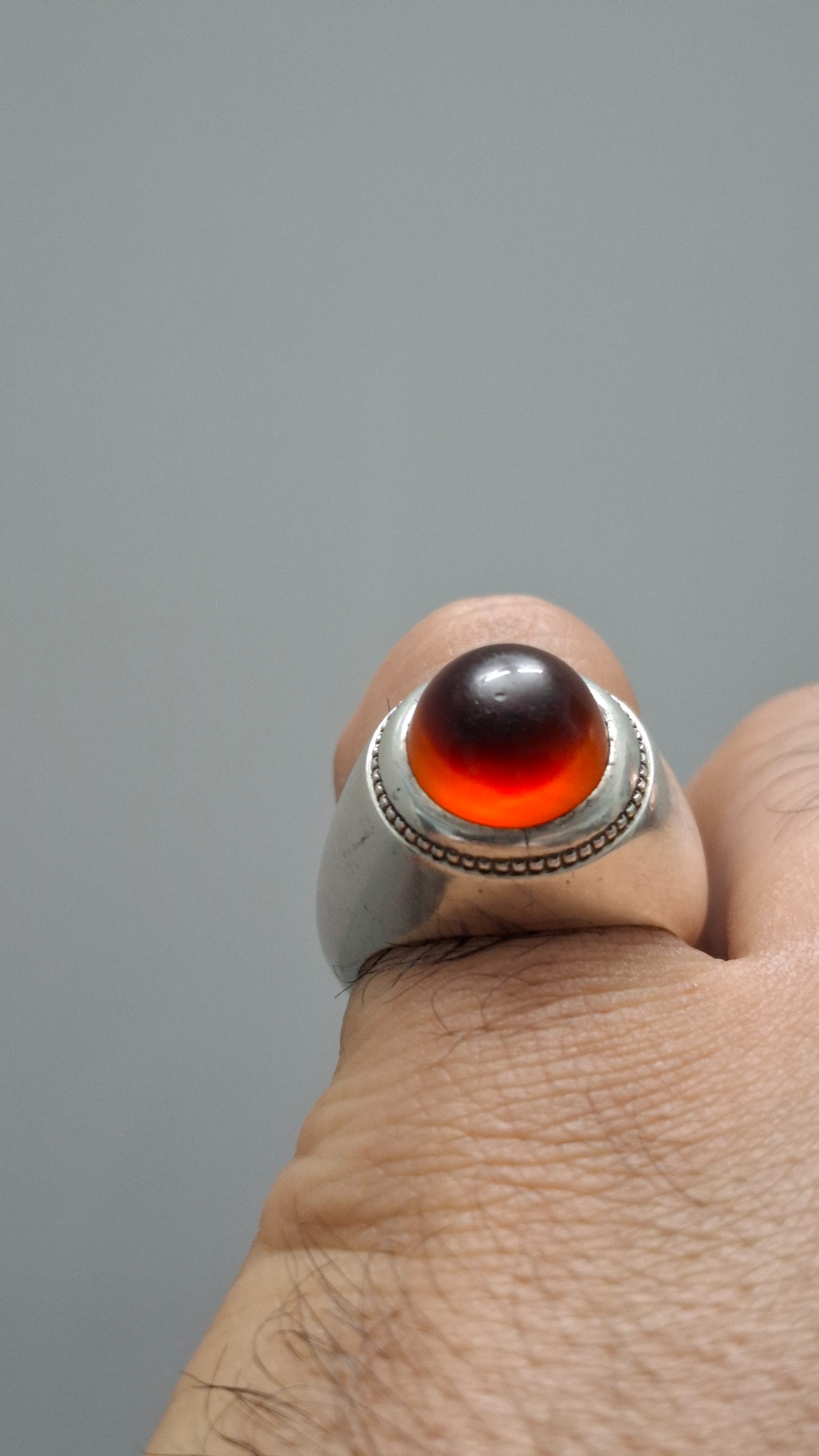انگشتر عقیق یمنی کهنه کلاه دار طوق دار.