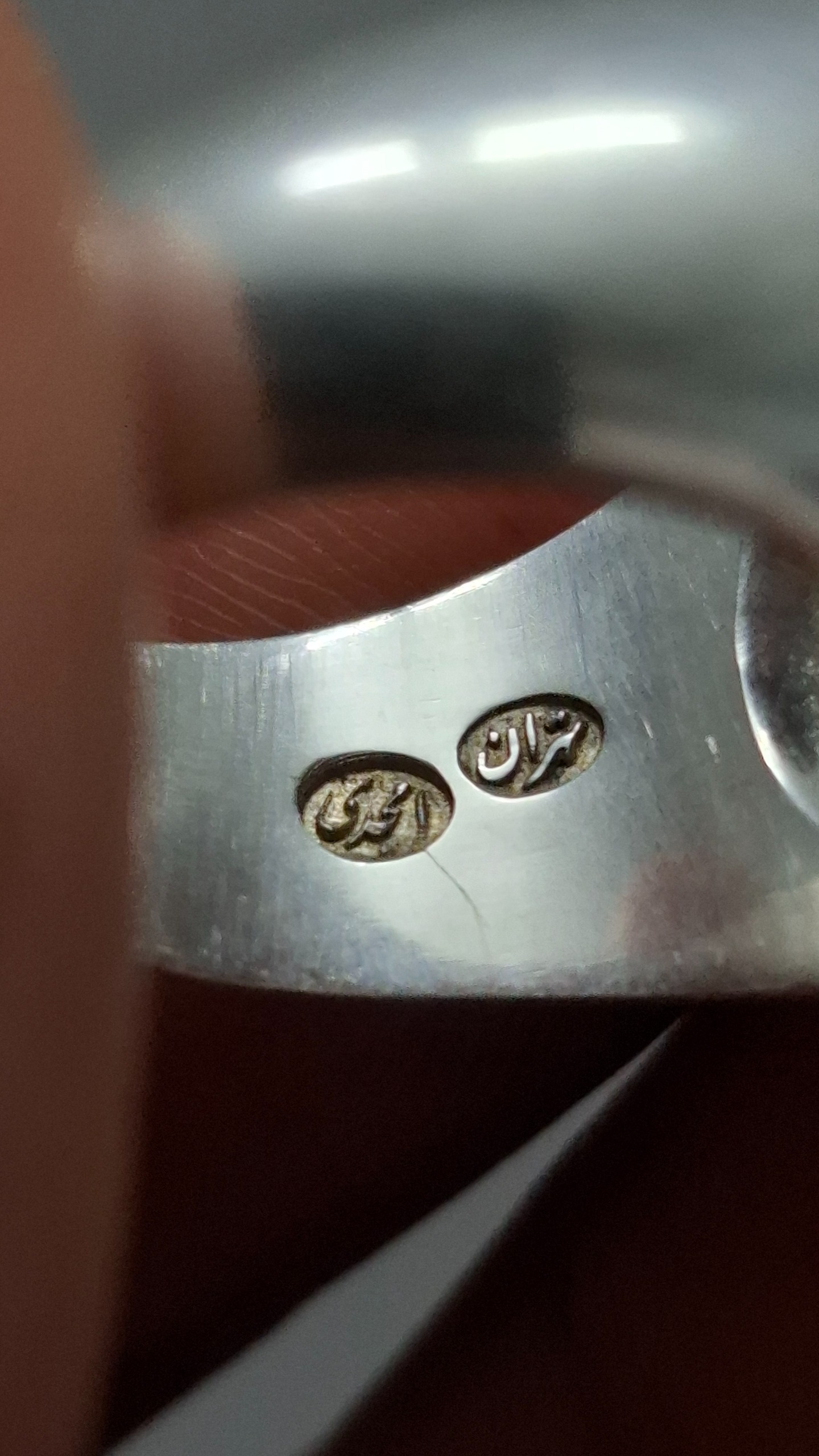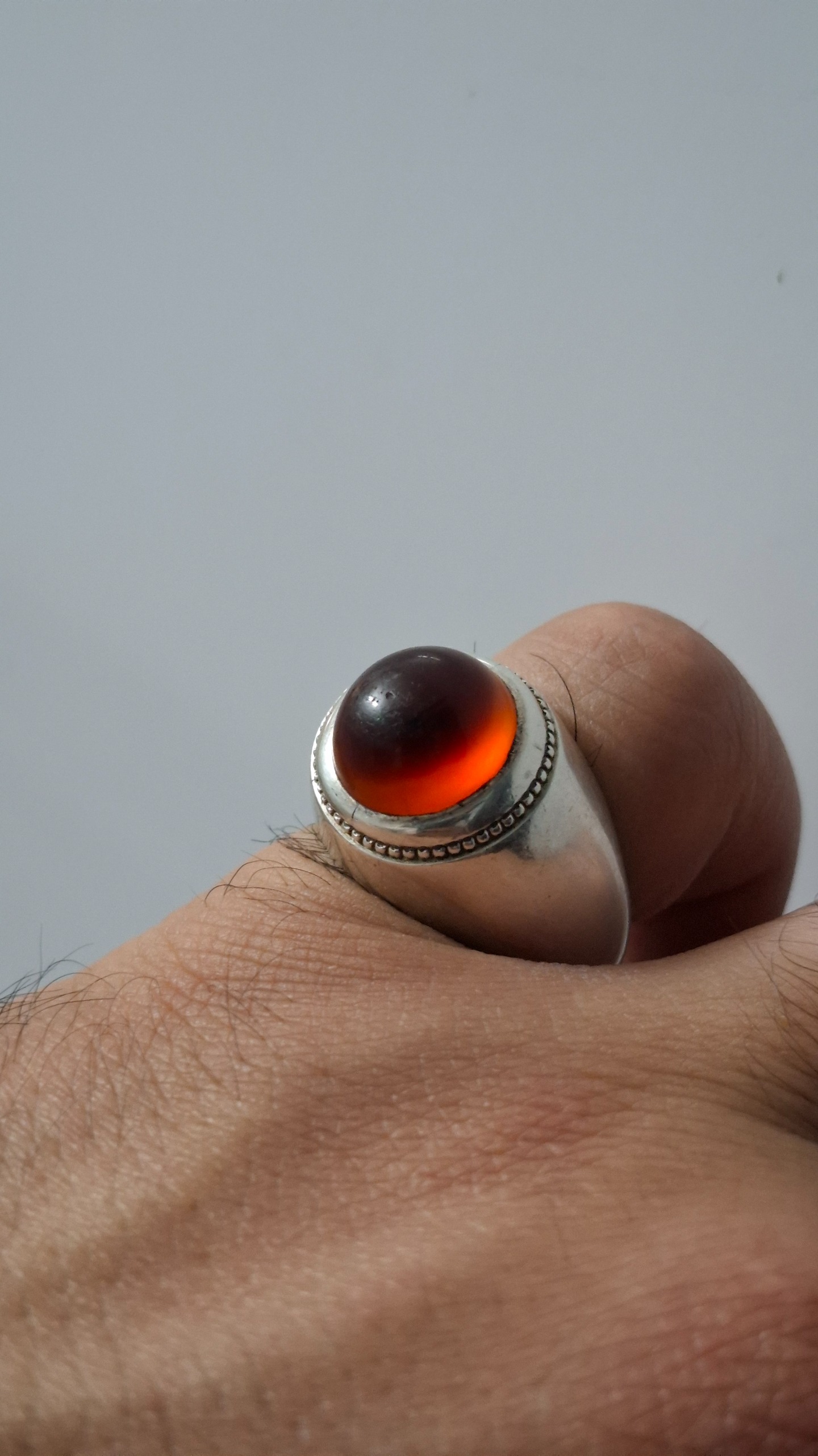 عقیق کهنه یمنی کلاه دار طوق دار چهار کله تیغ آبدار رکاب دستساز از استاد امجدی سایز 57. 58 وزن 16.5