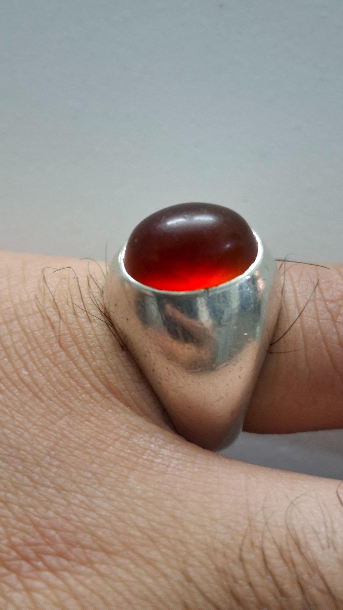 عقیق سرخ  سیاه کهنه یمنی تیغ آبدار رکاب دستساز با مهر صبا وزن 12.97 سایز 56