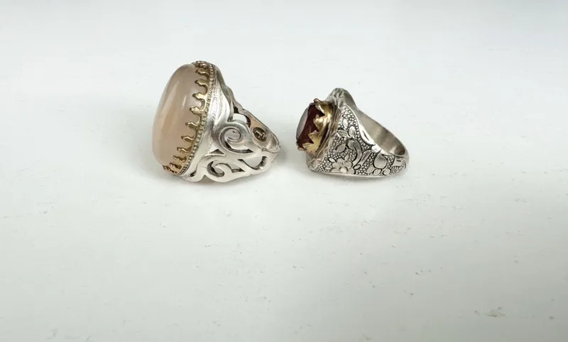 انگشتر نقره 925 عقیق شیری،رکاب دستساز