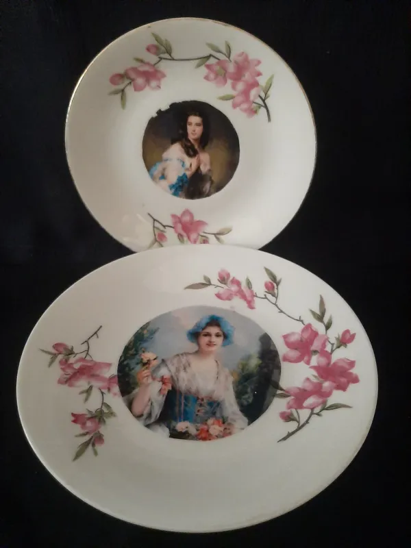 دو عدد نعلبکی دیوارکوب گل صورتی خاص عمر 60 یکی قطر 11 و دیگری قطر 13 بزرگ و کوچک دو مارک متفاوت روی این نعلبکیها برچسب دکوراتیو زده شده که باید مراقبت شود شستشو ساییدن و خراش ممنوع فقط پاک شود در اینصورت عمر بالایی دارد دقیقا مطابق با عکس