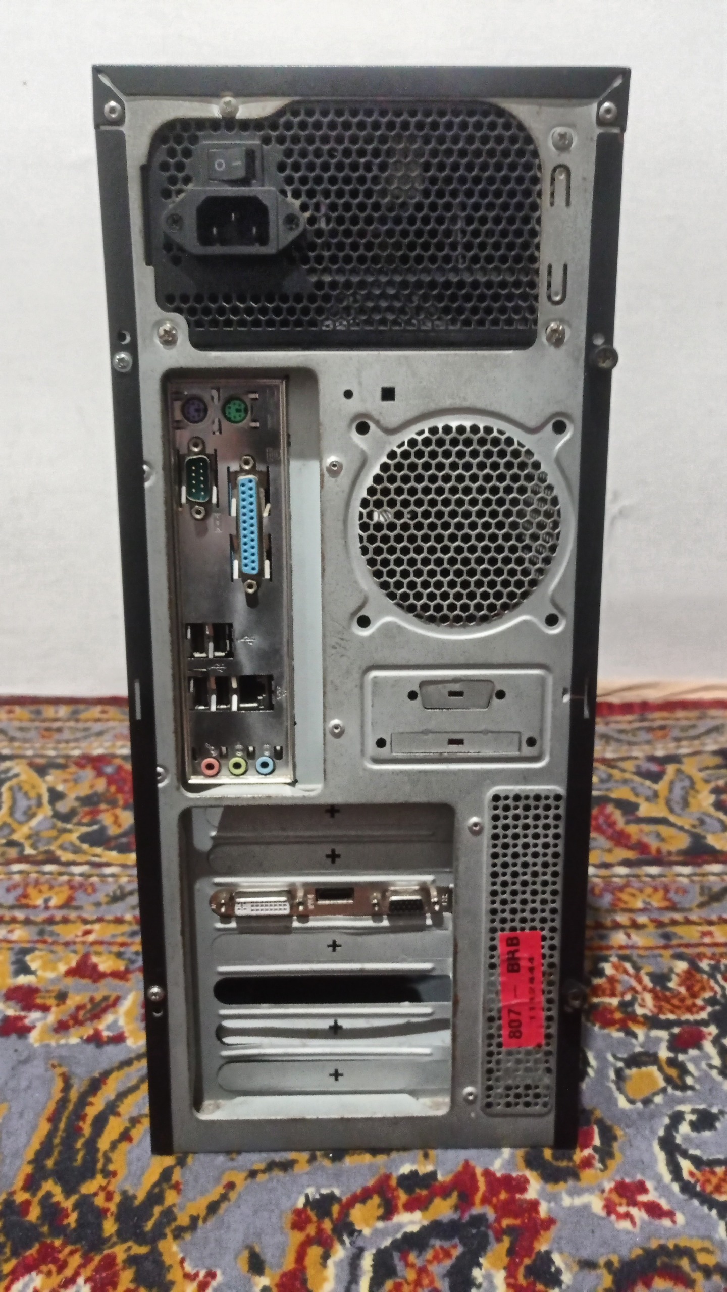 کیس کامپیوتر اداری قدیمی، CPU: Inter Pentium dual core 3GHz GPU: Nvidia GT610 2Gb DDR3 RAM: 2GB DDR3 مجهز به درایو نوری، دارای 4 پورت USB، یک عدد LAN که من نتونستم براش درایور پیدا کنم، پورت های صدا و پورت های متفرقه که امروزه خیلی کاربرد ندارن، کارت گرافیک هم 3 تا پورت داره، HDMI, VGA, DVI که همشون تست شدن و کار میکنن، سیستم با اینکه نستبتا قدیمیه ولی خیلی ساکته، بخاطر رم پایین گاهی هنگ میکنن که میتونین یه رم دیگه بگیرین و روش نصب کنین