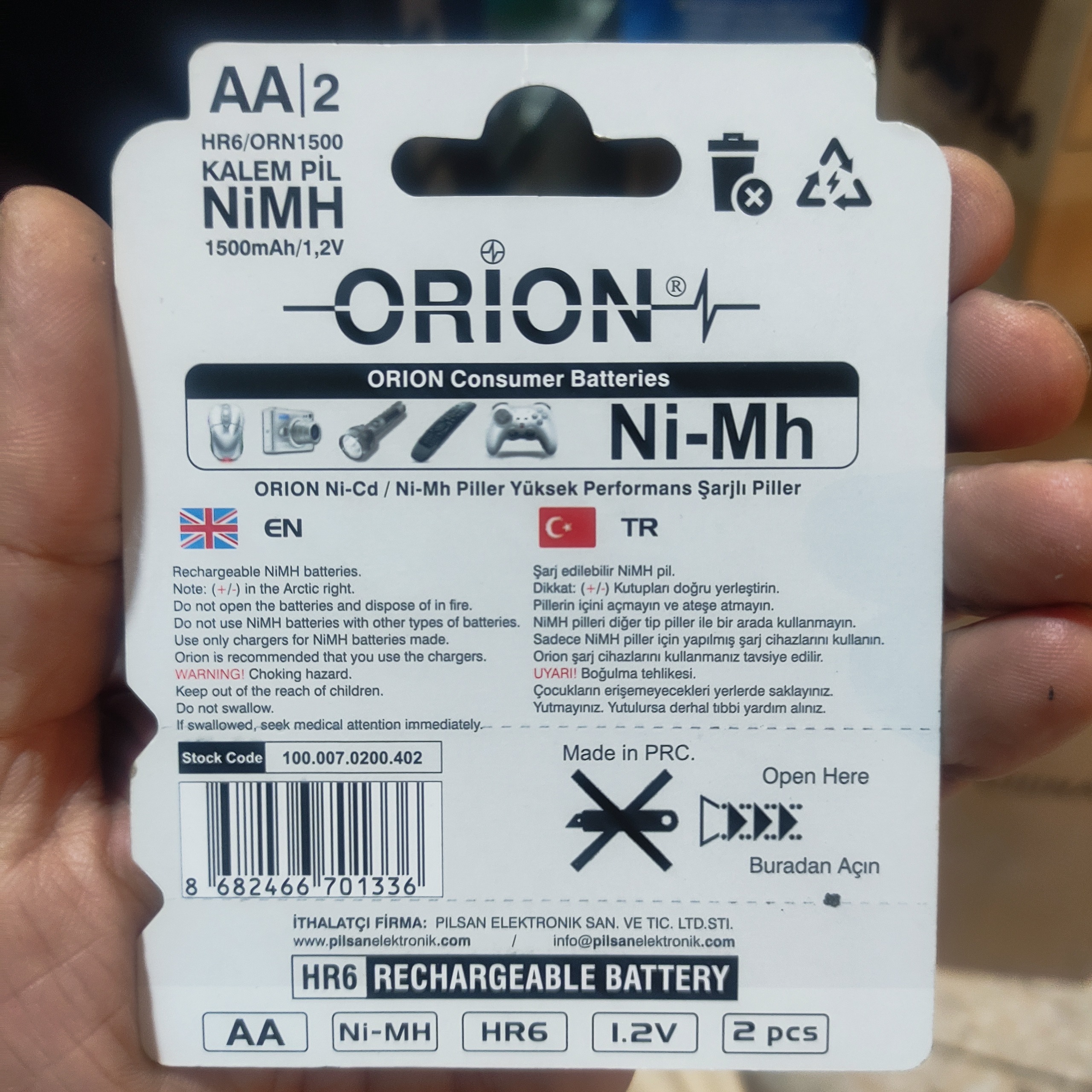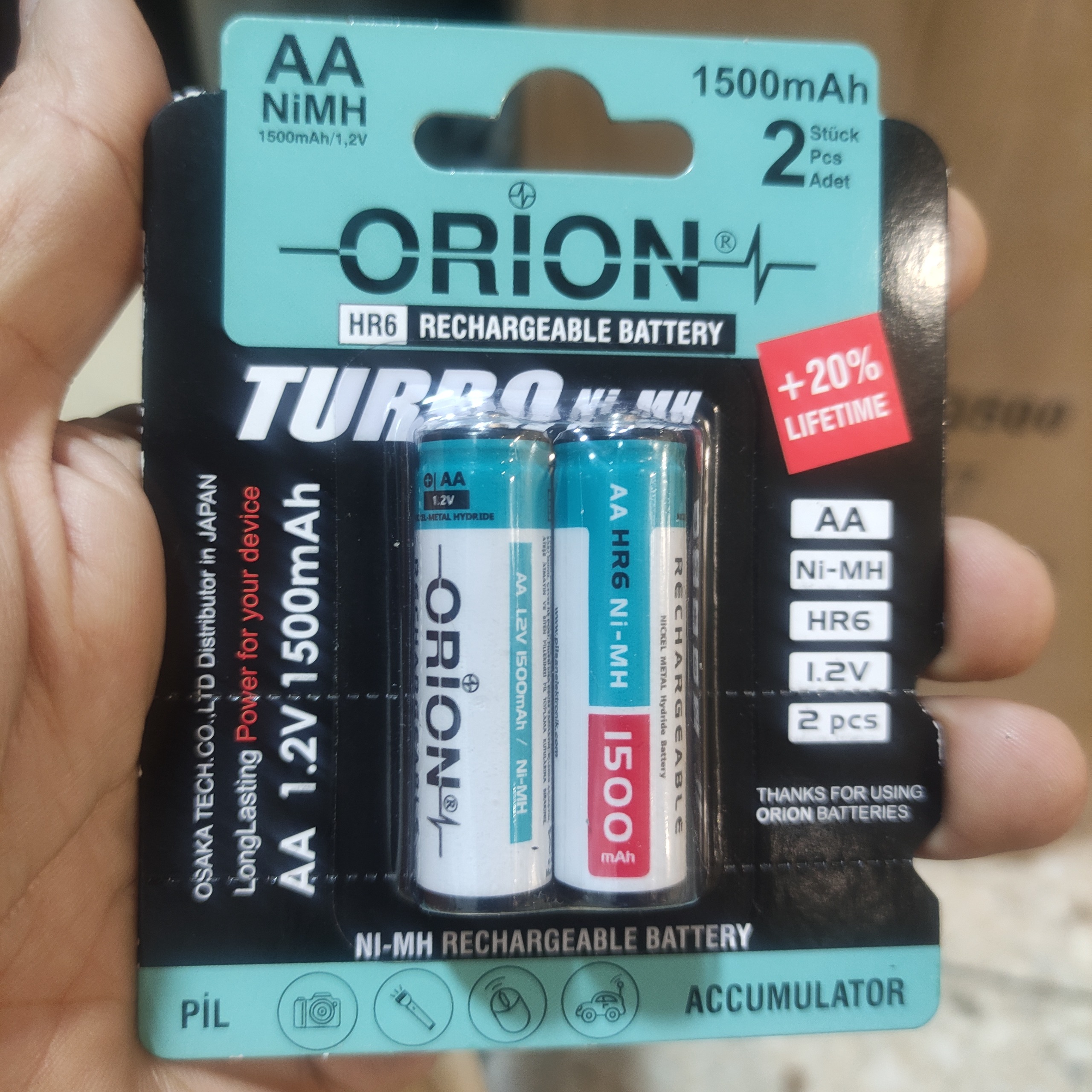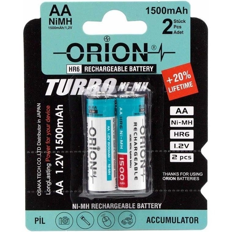 باتری قلمی شارژی اوریون مدل HR6 ظرفیت 1500 میلی آمپر بسته 2 عددی