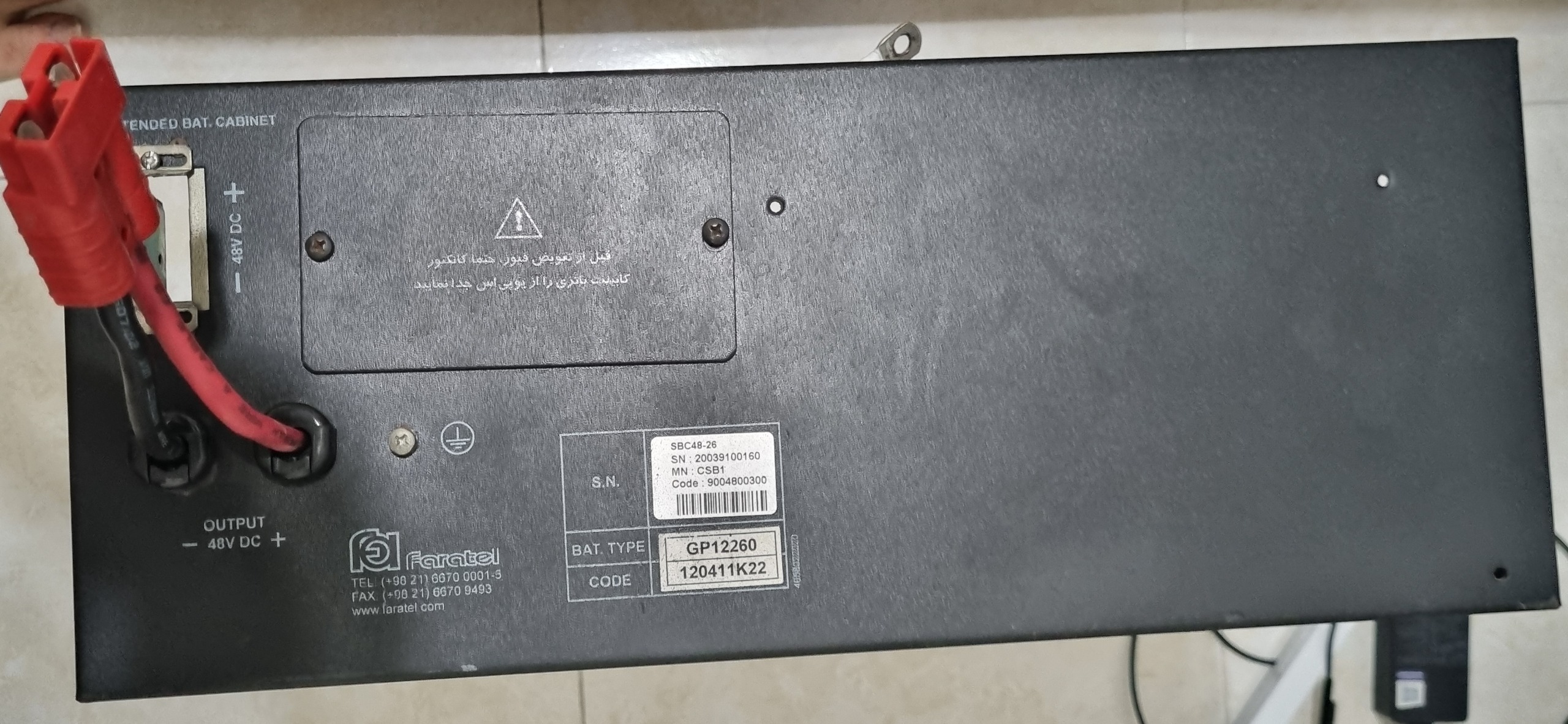 کابینت باتری فاراتل مدل sbc 48-26 به همراه سوکت و کابل اتصال به دستگاه کاملا سالم همانند عکسها