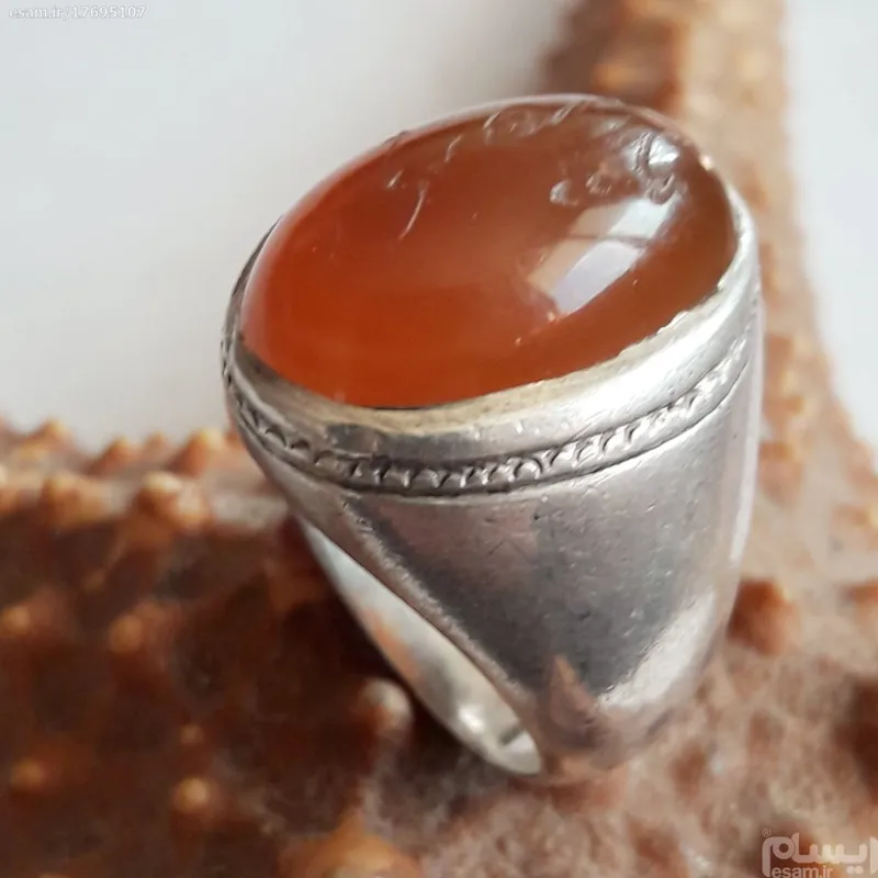 انگشتر قدمتدار قدیمی فوق کلکسیونی عقیق کهنه اصل معدنی ارزشمند قیمتی با خط قدیمی یا منصور فوق العاده بینظیر با ارزش بهای بالا رکاب دستساز نقره عیار بالا فوق العاده شگفت انگیز هست این انگشتر جدید ساخت نیست کهنه قدیمی هست یه کار کاملا متفاوت کلکسیونی